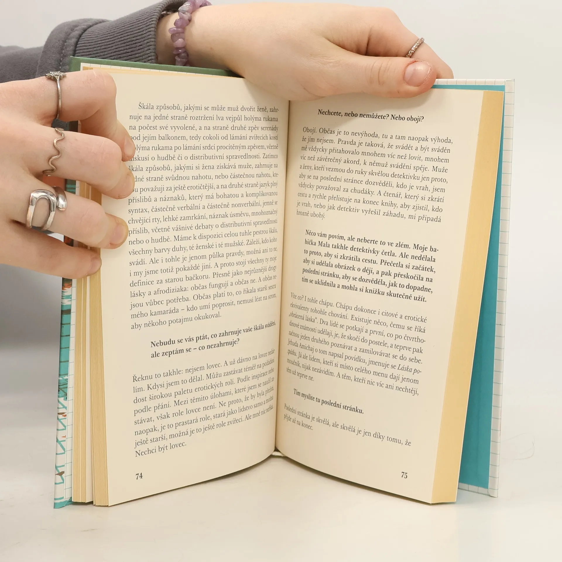 „Tahle kniha by se klidně mohla jmenovat Příběh skokana do prázdných bazénů,“ říká izraelský spisovatel Amos Oz. To když vypráví o zlomových okamžicích svého života, kdy se několikrát vydal do neznáma a musel začít znovu – změnil si jméno a opustil domov, podstatnou část života strávil v kibucu, kde si těžce vybojoval podmínky na psaní a nakonec i odtud musel spolu s dětmi a manželkou odejít téměř bez peněz a bez prostředků. Rozhovor s ním vede dlouholetá redaktorka jeho knih Šira Chadadová. Kriticky se ho ptá na jeho psaní a inspirace, politické postoje a vztah k erotice a genderu, empaticky naslouchá, když Oz vypráví o sebevraždě své matky nebo hněvu fanatiků, které pobouřil svými texty. V šesti rozhovorech o vášni a lásce, vině, radosti a smrti přináší ojedinělý a intimní vhled do života a tvorby významného spisovatele, věčného čekatele na Nobelovu cenu za literaturu.