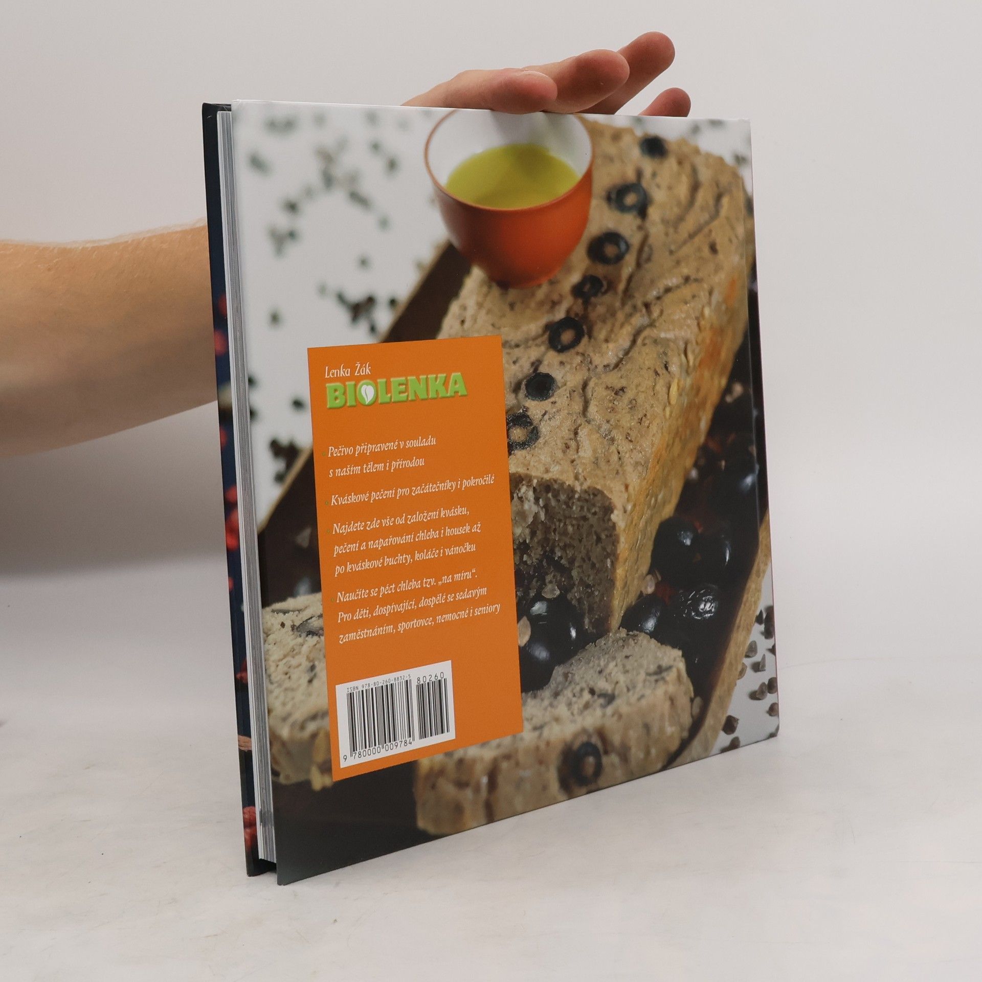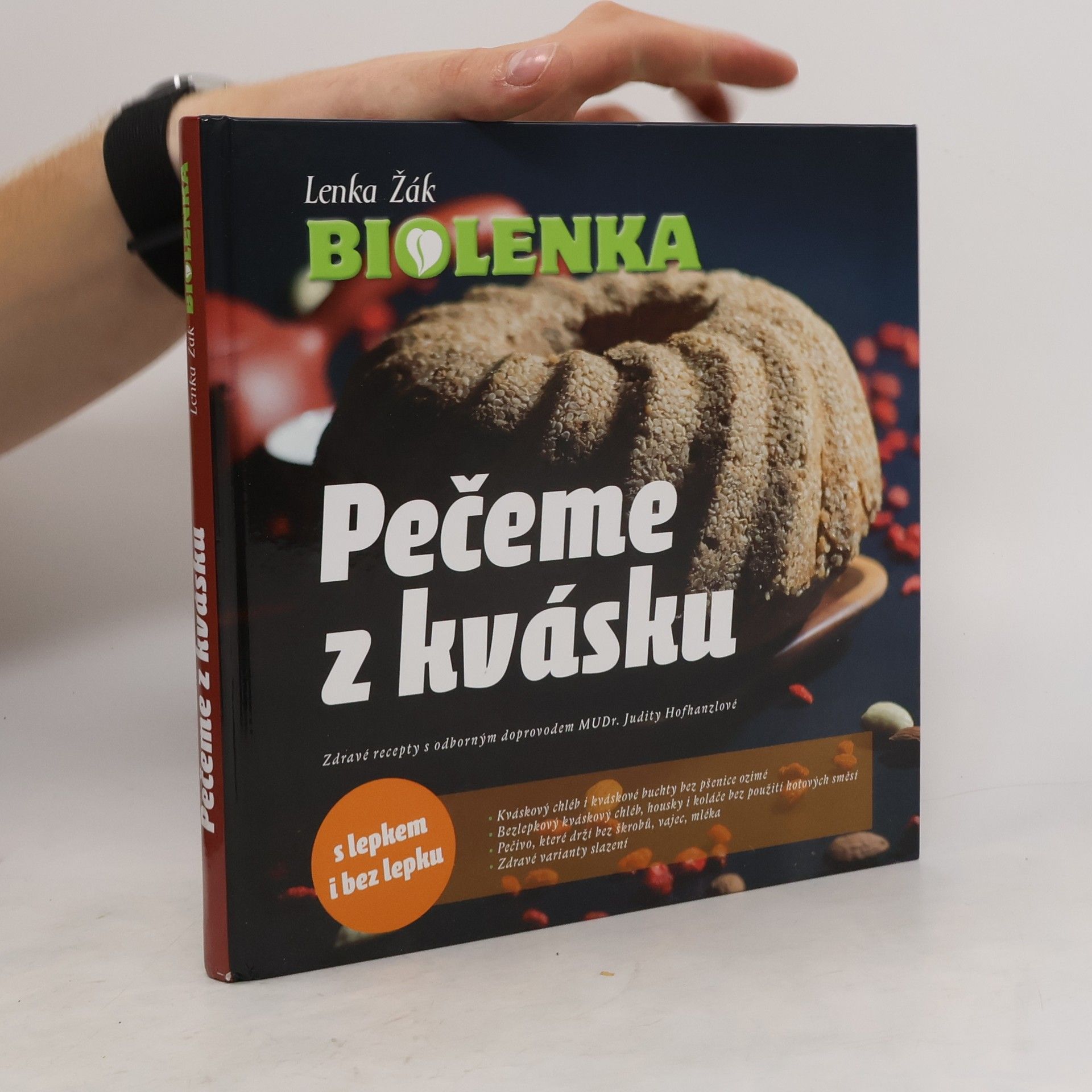 Lenka Žák – Biolenka se zabývá vědomým vařením a čtenářům své první knihy dokázala, že se dají šetřit peníze, zdraví i příroda maximálním využitím navařených surovin. V nové kuchařce Pečeme z kvásku, která navazuje na předchozí bestseller, vás naučí péct kváskové pečivo v troubě, na páře i na ohni. Najdete v ní vše od založení kvásku, pečení a napařování chleba i housek až po kváskové buchty, koláče i vánočku. Naučíte se péct chleba tzv. „na míru“ bez použití vajec, mléčných produktů, masa, škrobů a chemie. Celou kuchařku doprovází svými komentáři MUDr. Judita Hofhanzlová. Kniha je určena všem, které zajímá, co jí, kde plodina, z níž vaří, vyrostla a kdo se o ni s láskou staral. Přivítají ji jistě bezlepkáři, začátečníci i pokročilí, děti, dospívající, dospělí se sedavým zaměstnáním, sportovci, nemocní i senioři. Kuchařka ne náhodou obsahuje dvě části. V té první se peče kváskové pečivo ze všech druhů obilovin, kromě pšenice ozimé, která svým vysokým obsahem lepku tělo spíše zatěžuje. Ve druhé části se peče z obilovin, které neobsahují lepek. Autorka chce ukázat, že péct z bezlepkové mouky je přirozené a přináší tělu zpestření. Díky odborné pomoci MUDr. Josefa Jonáše bylo kváskové bezlepkové pečivo ověřené a přináší nám skvělou zprávu. Kváskové pečivo vyrobené z čerstvě namletých bezlepkových obilovin, zadělané rýžovým kváskem našemu zažívání prospívá. A to všem, kteří chtějí odlehčit svému organismu od velkokonzumace pšeničného pečiva (které může způsobovat únavu, alergie, bolesti hlavy, špatné zažívání). Prospívá i sekundárním celiatikům, kteří snesou tzv. homeopatickou dávku lepku (primární celiak je ten, kdo se s nesnášenlivostí na lepek narodil). Dokonce i vitariány (lidé , kteří nejedí tepelně upravené jídlo) čeká speciální příloha. Zkrátka, každý, kdo bude chtít, si najde to své. Péct a napařovat podle knihy mohou lidé s bezlepkovou dietou, alergici, vegani, vegetariáni, ale i všichni, kteří si chtějí zpestřit svůj jídelníček. Kniha je netradiční kuchařkou, píše se v ní totiž o energii přírody, o jejím působení na naše zdraví, a autorka ji dokonce zve do své kuchyně jako nedílnou součást přípravy jednotlivých pokrmů. Nakonec tady najdete rozhovory: s PhDr. Radimem Urbánkem na téma historie mletí mouky a s PhDr. Anežkou Janátovou o antroposofickém pohledu na chléb.