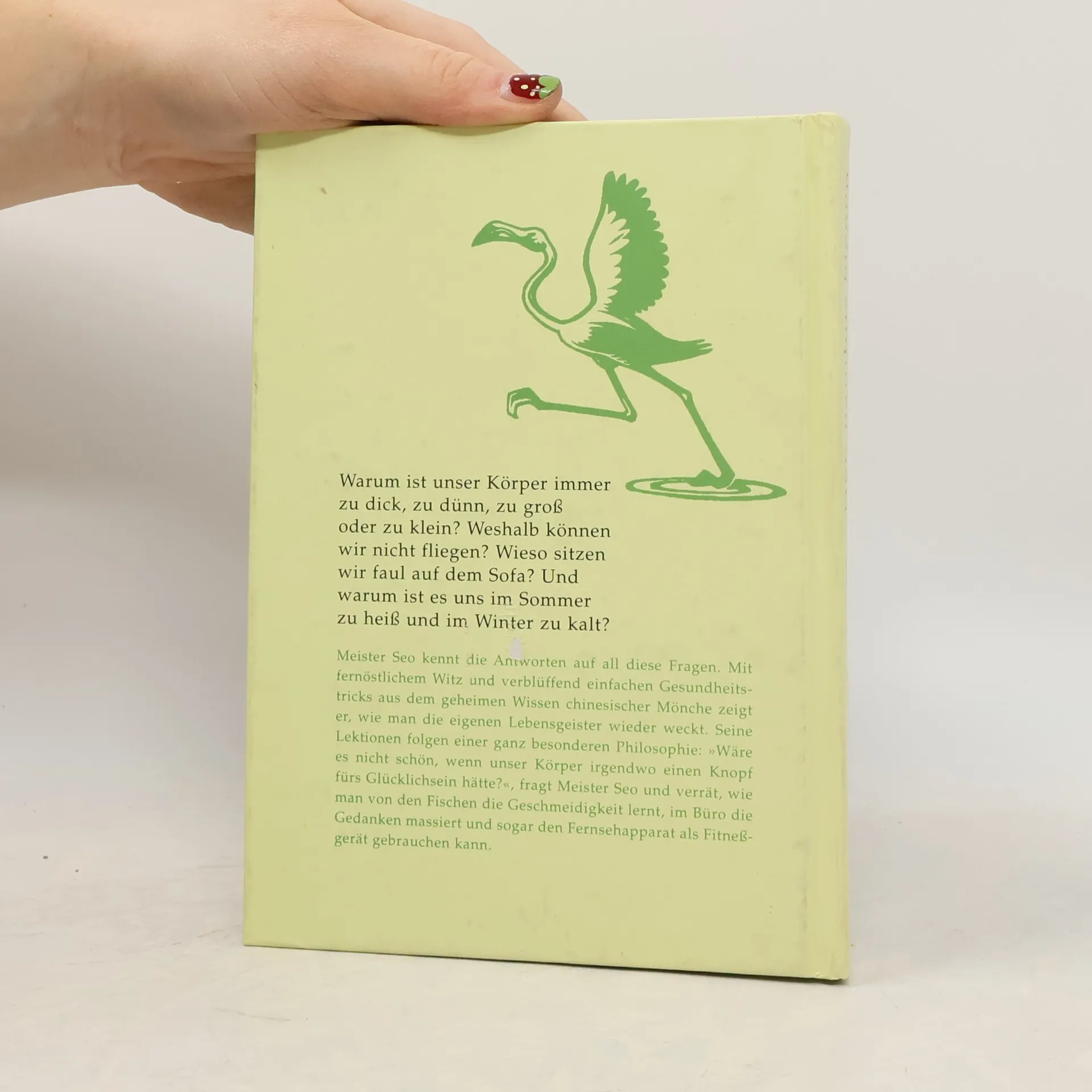 „Noch ist “Meister Seos Anleitung zum Glücklichsein„ nicht staatlich verordnet, aber sehr zu empfehlen.“ MÜNCHNER MERKUR Eine gute Prise fernöstliche Lebensweisheit, ein Griff in die geheime Gesundheitstrickkiste asiatischer Mönche, eine Reihe einfacher Übungen - und fertig ist das Lebenselexier des koreanischen Meisters Seo Yoon-Nam zur Stärkung von Körper und Geist. Ein Trainingsprogramm, wie es unterhaltsamer und effektiver nicht sein kann!