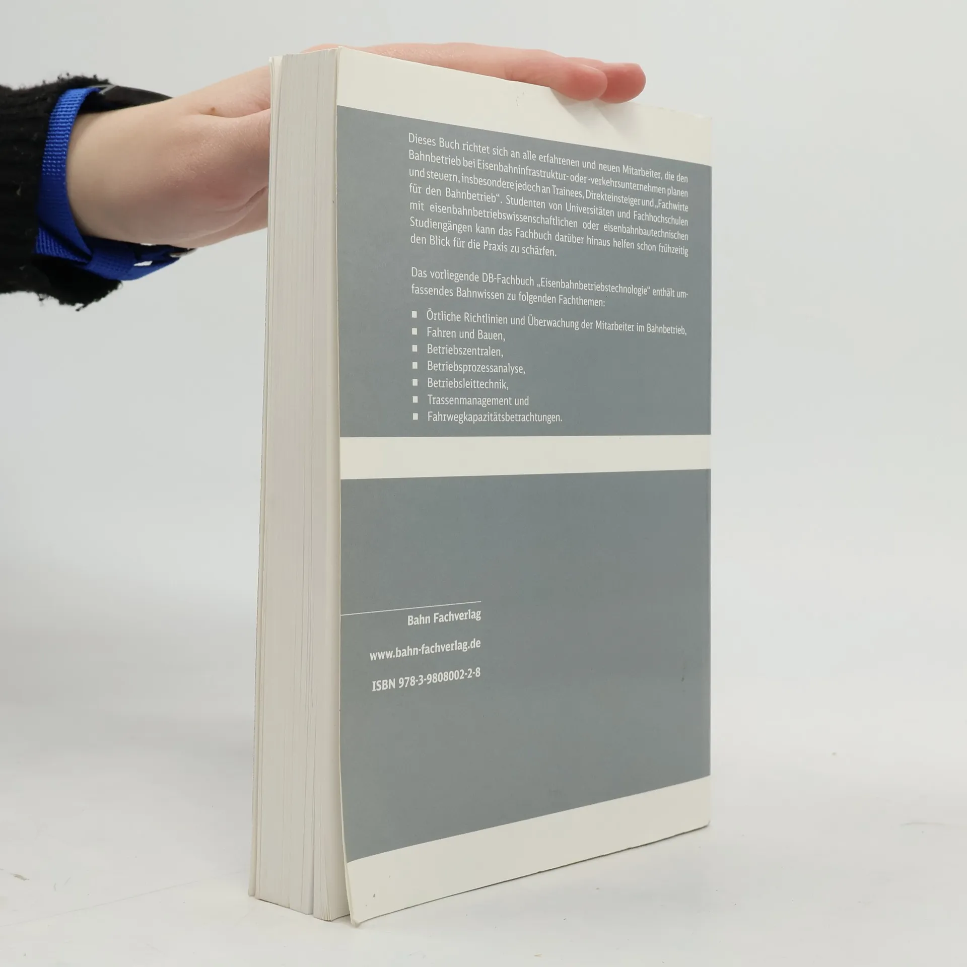 Dieses Fachbuch richtet sich an alle erfahrenen und neuen Mitarbeiter, die den Bahnbetrieb bei Eisenbahninfrastruktur- oder -verkehrsunternehmen planen und steuern, insbesondere jedoch an Trainees, Direkteinsteiger und „Fachwirte für den Bahnbetrieb“. Studenten von Universitäten und Fachhochschulen mit eisenbahnbetriebswissenschaftlichen oder eisenbahnbautechnischen Studiengängen kann das Fachbuch darüber hinaus helfen schon frühzeitig den Blcik für die Praxis zu schärfen. Das Buch enthält umfassendes Bahnwissen zu den Fachthemen Örtliche Richtlinien und Überwachung der Mitarbeiter im Bahnbetrieb, Fahren und Bauen, Betriebszentralen, Betriebsprozessanalyse, Betriebsleittechnik, Trassenmanagement und Fahrwegkapazitätsbetrachtungen.