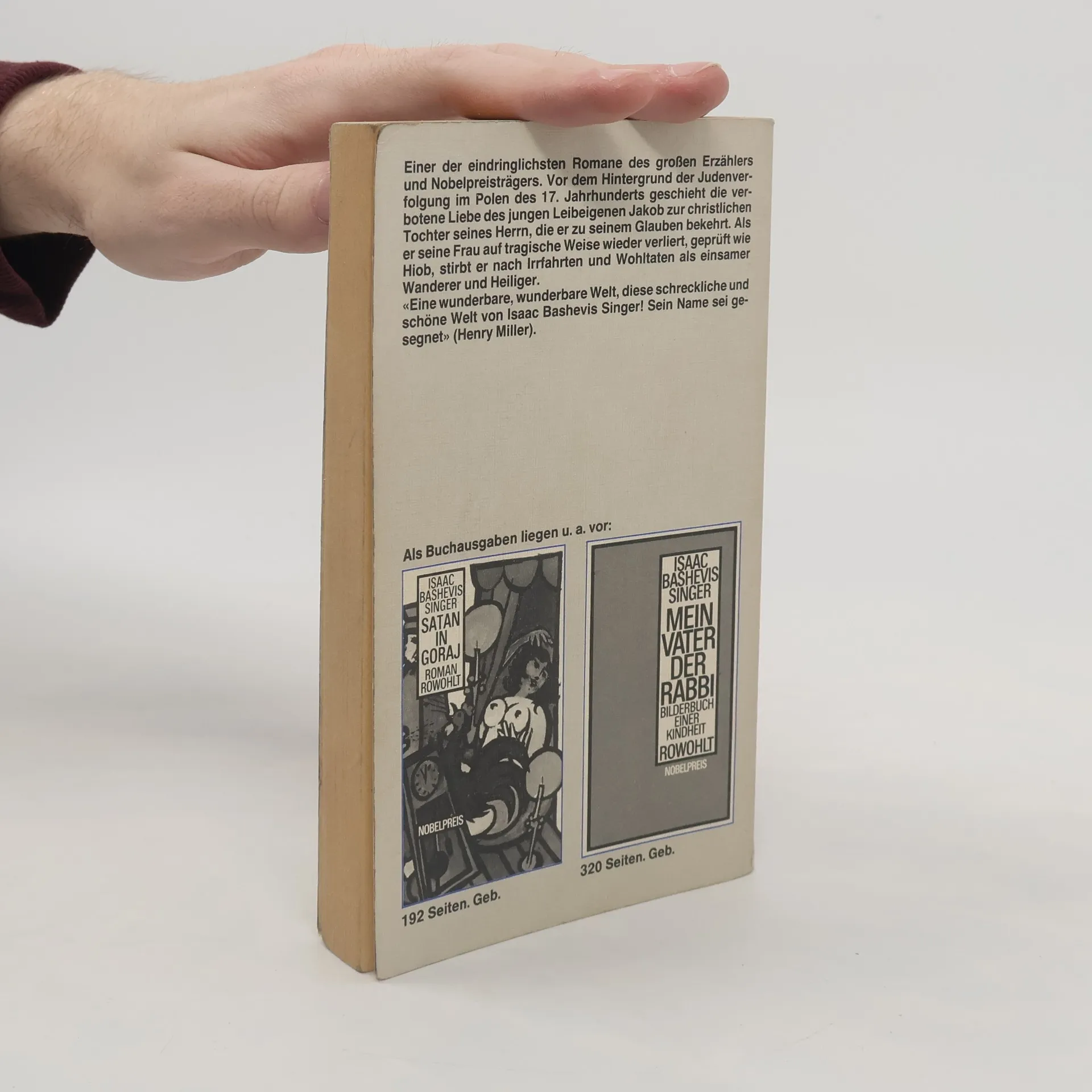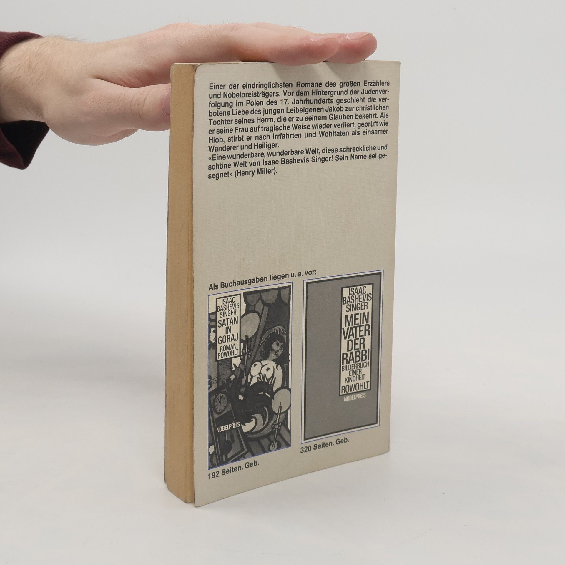 Einer der eindringlichsten Romane des großen Erzählers und Nobelpreisträgers Polen, im 17. Jahrhundert: Russische Kosaken terrorisieren die Juden. Der jüdische Leibeigene Jakob verliebt sich ich die christliche Tochter seines Herrn. Als Jakob freigekauft wird, bekehrt er Wanda zu seinem Glauben und nimmt sie zur Frau. Doch damit geraten sie in tödliche Gefahr., “Eine wunderbare, wunderbare Welt, diese schrecklich schöne Welt von Isaac Bashevis Singer! Sein Name sei gesegnet.” (Henry Miller)