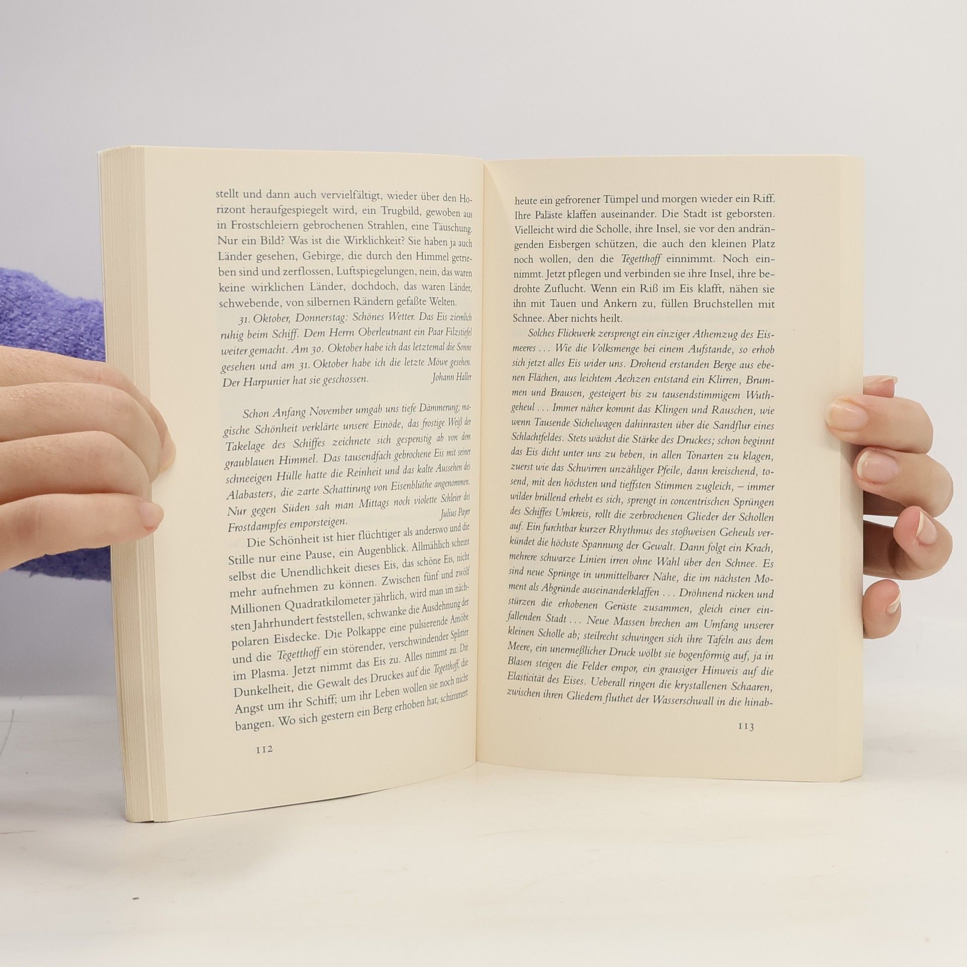 Im Zentrum dieses vielschichtigen Abenteuerromans steht das Schicksal der österreichisch-ungarischen Nordpolexpedition der »Payer-Weyprecht-Expedition«, die im arktischen Sommer 1872 in das unerforschte Meer nordöstlich des sibirischen Archipels Nowaja Semlja aufbricht. Das Expeditionsschiff wird bald - und für immer - vom Packeis eingeschlossen. Nach einer mehr als einjährigen Drift durch alle Schrecken des Eises und der Finsternis entdeckt die vom Skorbut geplagte Mannschaft eine unter Gletschern begrabene Inselgruppe am Rande der Welt und tauft sie zu Ehren eines fernen Herrschers »Kaiser-Franz-Joseph-Land«. Einer der letzten blinden Flecke ist damit von der Landkarte der Alten Welt getilgt.Parallel zum Drama dieser historischen Expedition erzählt Ransmayr die Geschichte eines jungen, in Wien lebenden Italieners namens Mazzini, der mehr als hundert Jahre später zum besessenen Sammler aller hinterlassenen Zeugnisse und Dokumente der »Payer-Weyprecht-Expedition« wird und schließlich ins Eismeer aufbricht, um als Passagier eines norwegischen Forschungsschiffes die Entdeckung des »Franz-Joseph-Landes« nachzuvollziehen. Aber im Verlauf seiner Recherchen zur polaren Entdeckungsgeschichte gerät Mazzini immer tiefer in die arktische Gegenwart und verschwindet schließlich, ein Schlittenreisender, in den Gletscherlandschaften Spitzbergens.