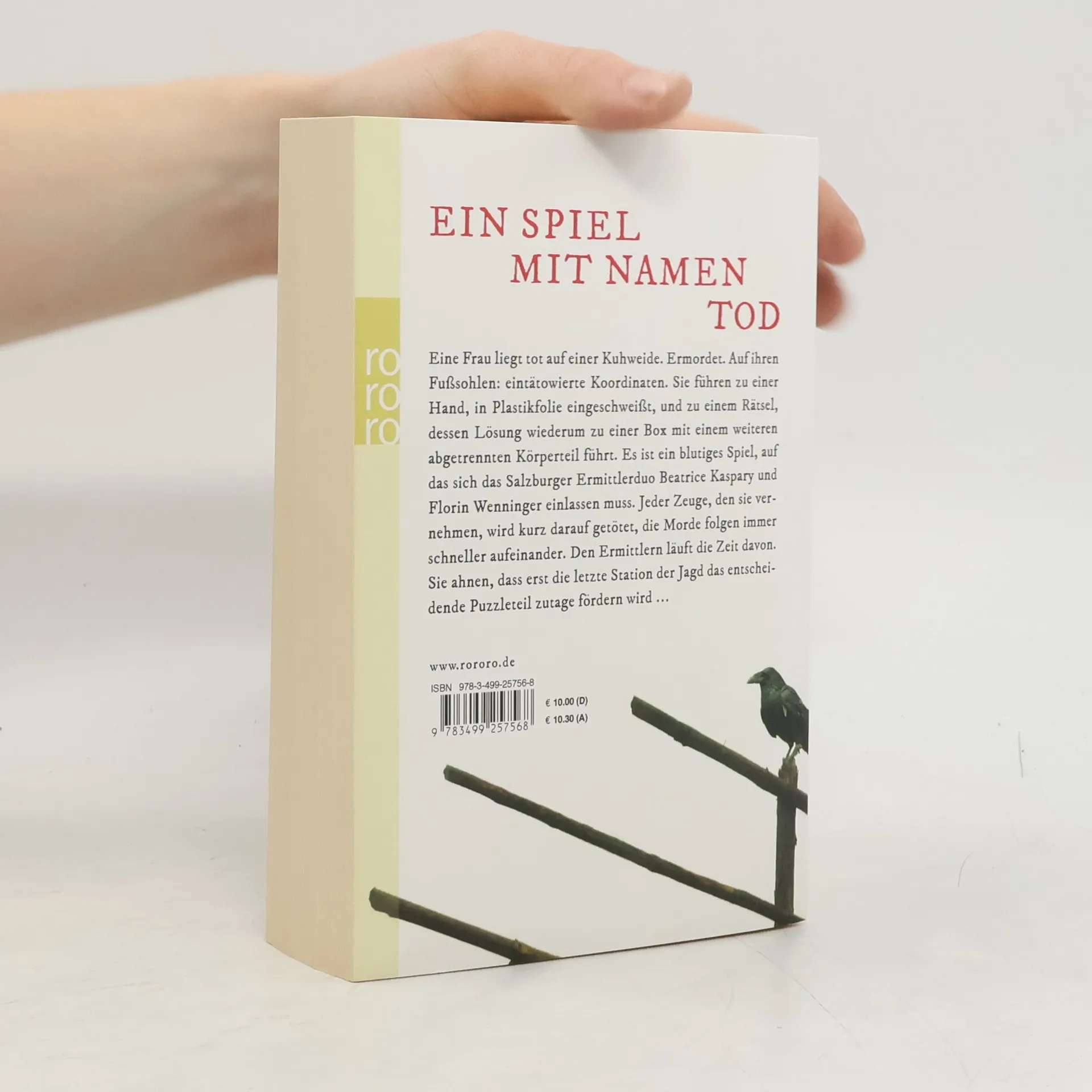 Ein Spiel mit Namen Tod.Eine Frau liegt tot auf einer Kuhweide. Ermordet. Auf ihren Fußsohlen: eintätowierte Koordinaten. Sie führen zu einer Hand, in Plastikfolie eingeschweißt, und zu einem Rätsel, dessen Lösung wiederum zu einer Box mit einem weiteren abgetrennten Körperteil führt. Es ist ein blutiges Spiel, auf das sich das Salzburger Ermittlerduo Beatrice Kaspary und Florin Wenninger einlassen muss. Jeder Zeuge, den sie vernehmen, wird kurz darauf getötet, die Morde folgen immer schneller aufeinander. Den Ermittlern läuft die Zeit davon. Sie ahnen, dass erst die letzte Station der Jagd das entscheidende Puzzleteil zutage fördern wird ...
