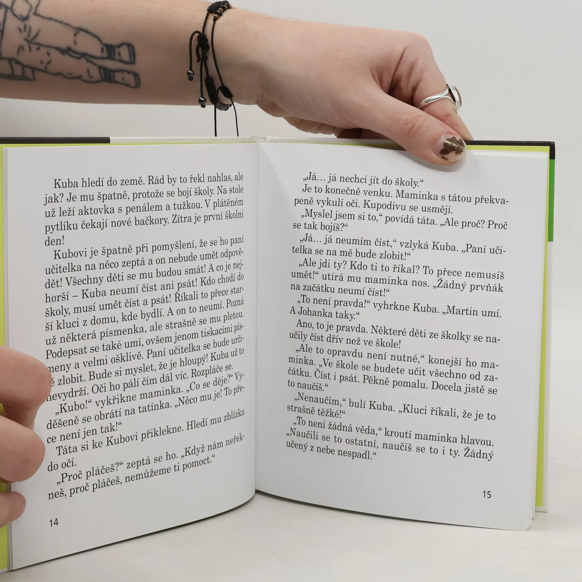 Vyprávění o prvňáčkovi, který by hrál mnohem radši fotbal na hřišti, než seděl ve škole a učil se. Kuba jde po prázdninách do první třídy a bojí se. Neumí totiž číst ani psát, zatímco jeho dva kamarádi ze školky ano. Naštěstí má Kuba hodné rodiče, kteří mu vysvětlí, že to vůbec nevadí a že se ve škole brzy psát i číst naučí. I paní učitelka je moc milá. Jenomže škola, to jsou povinnosti a Kubu baví mnohem víc fotbal než počítání, psaní domácích úkolů apod. Paní učitelka ale ví, co na takové děti platí. Vyhlásí, že kdo bude na konci roku nejlepší, dostane odměnu. A to je pro Kubu velká motivace.