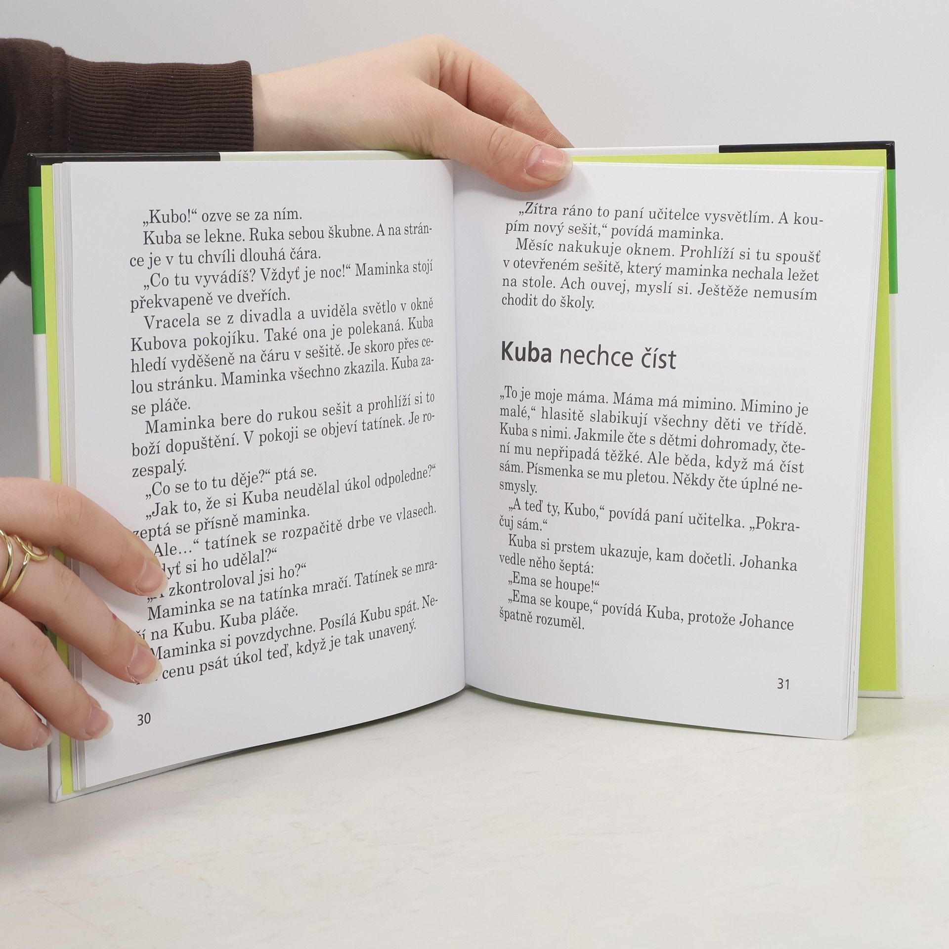 Vyprávění o prvňáčkovi, který by hrál mnohem radši fotbal na hřišti, než seděl ve škole a učil se. Kuba jde po prázdninách do první třídy a bojí se. Neumí totiž číst ani psát, zatímco jeho dva kamarádi ze školky ano. Naštěstí má Kuba hodné rodiče, kteří mu vysvětlí, že to vůbec nevadí a že se ve škole brzy psát i číst naučí. I paní učitelka je moc milá. Jenomže škola, to jsou povinnosti a Kubu baví mnohem víc fotbal než počítání, psaní domácích úkolů apod. Paní učitelka ale ví, co na takové děti platí. Vyhlásí, že kdo bude na konci roku nejlepší, dostane odměnu. A to je pro Kubu velká motivace.