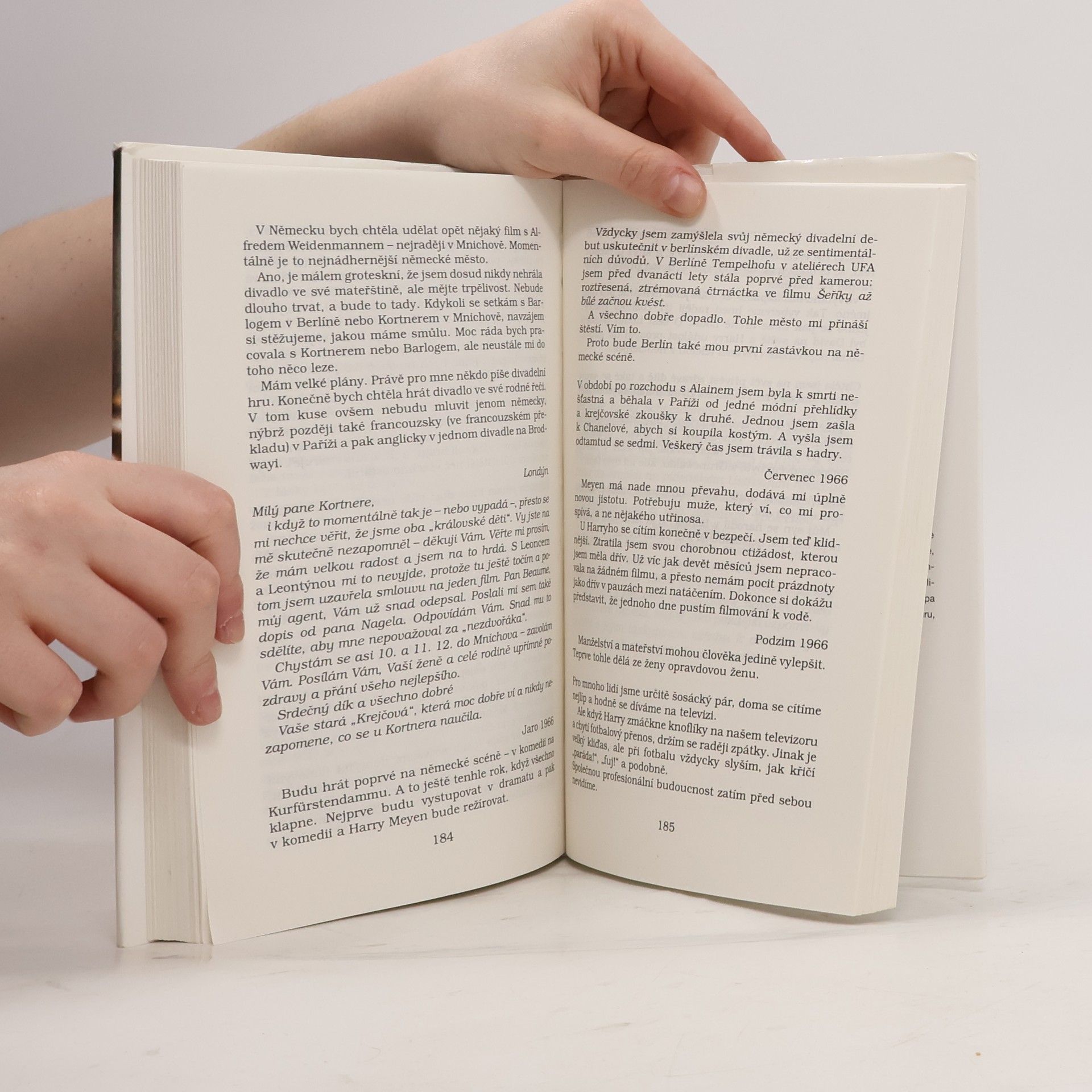 Publikace doplněná fotografiemi se skládá z hereččina osobního deníku, dopisů, vzpomínek matky a doprovodných textů. Otevřeně, zajímavě popisuje své dětství soukromí i umělecký život.