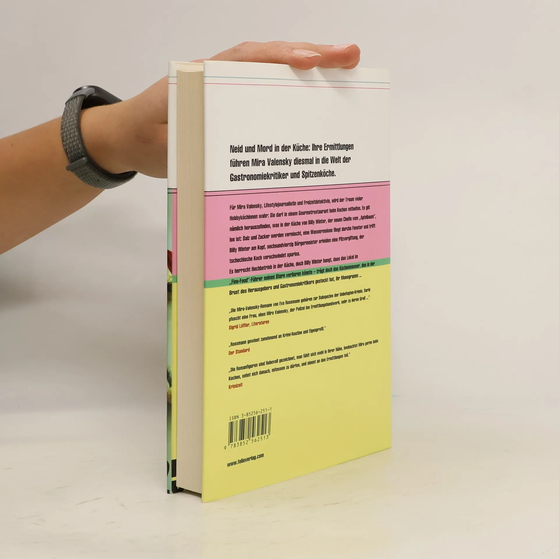 Neid und Mord in der Kü Ihre Ermittlungen führen Mira Valensky diesmal in die Welt der Gastronomiekritiker und Spitzenköche. Für Mira Valensky, Lifestyle-Journalistin und Freizeitdetektivin, wird der Traum vieler Hobbyköchinnen Sie darf in einem Gourmetrestaurant beim Kochen mithelfen. Es gilt nämlich herauszufinden, was in der Küche von Billy Winter, der neuen Chefin vom "Apfelbaum", los Salz und Zucker werden vertauscht, eine Wassermelone fliegt durchs Fenster und trifft Billy Winter am Kopf, vierzig Bürgermeister erleiden eine Pilzvergiftung, der tschechische Koch verschwindet spurlos. Es herrscht Hochbetrieb in der Küche, doch Billy Winter bangt, dass das Lokal im "Fine-Food-Führer" seinen Stern verlieren könnte - gehört doch das Küchenmesser, das in der Brust des Herausgebers und Gastronomiekritikers gesteckt hat, ihr ... Nun schaltet sich auch Vesna, Miras Putzfrau und Freundin, ein. Sie poliert als Aushilfe im Restaurant Gläser und hört sich dabei ein bisschen um. Auch im Lokal des Shooting-Stars Daniel Capriati, eines ehemaligen Kollegen Billy Winters, geschehen seltsame Erst gibt es salmonellenverseuchtes Hühnerfleisch, dann brennt beinahe die Küche ab. Und als Mira schließlich in der Faschiermaschine zwei Finger findet, drängt sich die Frage Will hier jemand die gesamte Kochszene zu Fall bringen?