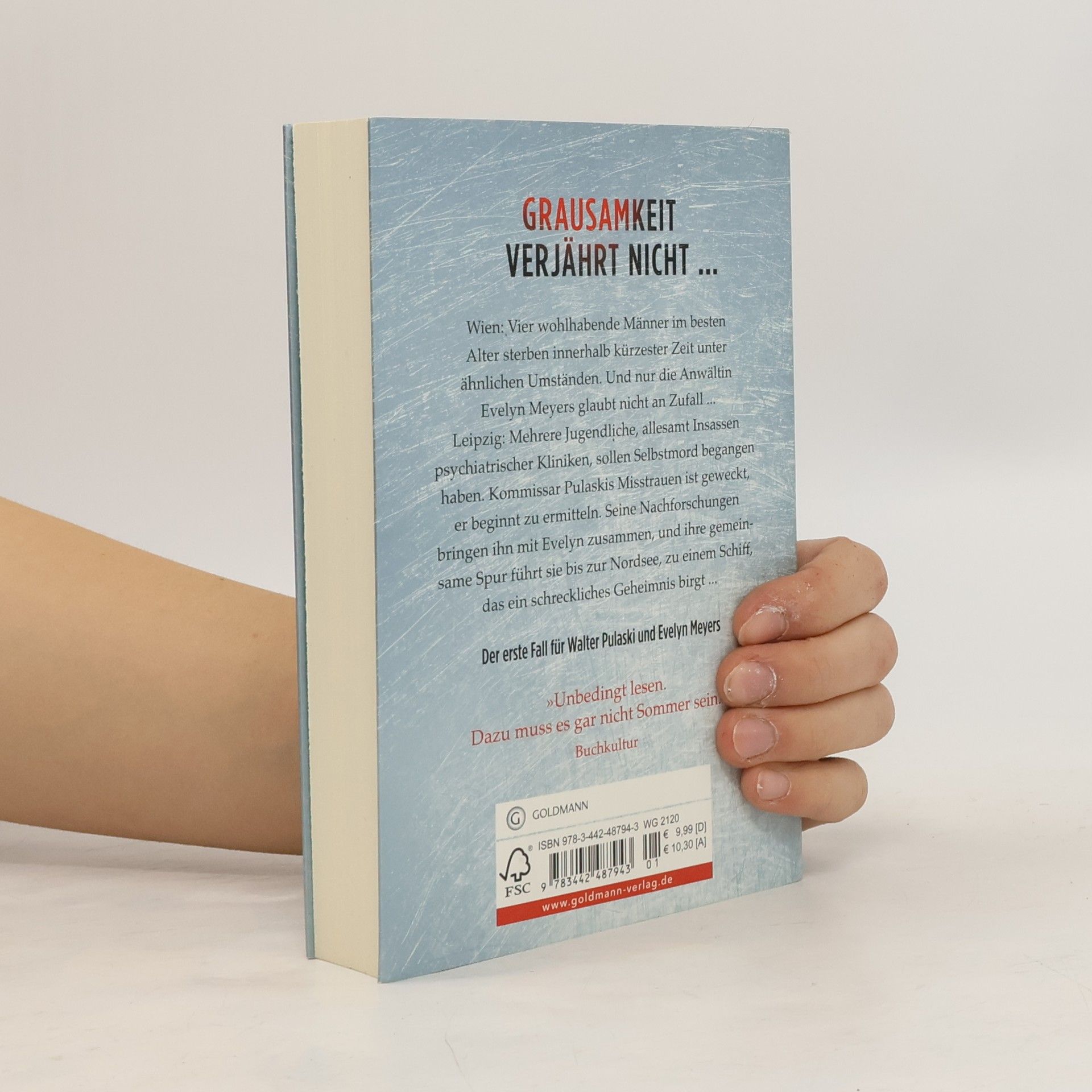 Wien. Vier wohlhabende Männer im besten Alter sterben innerhalb kürzester Zeit unter ähnlichen Umständen. Und nur die Anwältin Evelyn Meyers glaubt nicht an Zufall ... Leipzig. Mehrere Jugendliche, allesamt Insassen psychiatrischer Kliniken, sollen Selbstmord begangen haben. Kommissar Pulaskis Misstrauen ist geweckt, er beginnt zu ermitteln. Seine Nachforschungen bringen ihn mit Evelyn zusammen, und ihre gemeinsame Spur führt sie bis zur Nordsee, zu einem Schiff, das ein schreckliches Geheimnis birgt ...