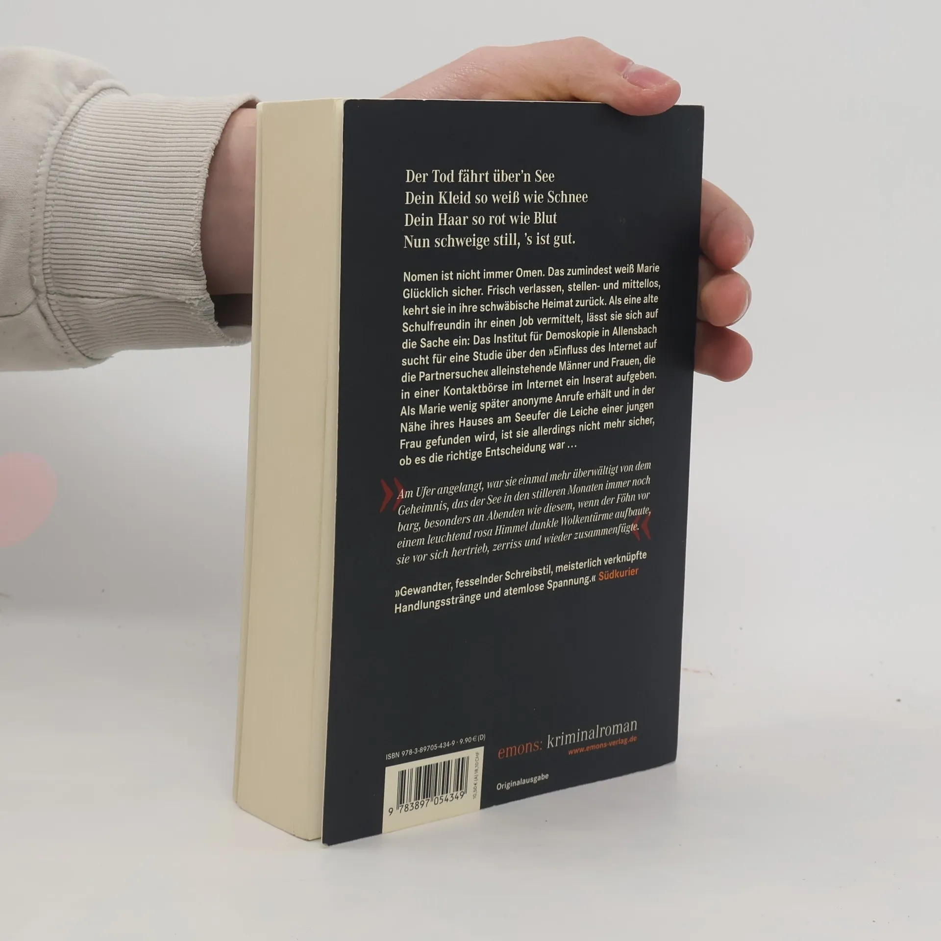 Nomen ist nicht immer Omen. Das zumindest weiß Marie Glücklich sicher. Frisch verlassen, stellen- und mittellos, kehrt sie in ihre schwäbische Heimat zurück. Als eine alte Schulfreundin ihr einen Job vermittelt, lässt sie sich, wenn auch widerwillig, auf die Sache ein: Das Institut für Demoskopie in Allensbach sucht für eine Studie über den 'Einfluss des Internet auf die Partnersuche' allein stehende Männer und Frauen, die in einer Online-Kontaktbörse ein Inserat aufgeben. AAls Marie wenig später anonyme Anrufer erhält und in der Nähe ihres Hauses am Seeufer die Leiche einer jungen Frau gefunden wird, ist sie allerdings nicht mehr sicher, ob es die richtige Entscheidung war.
