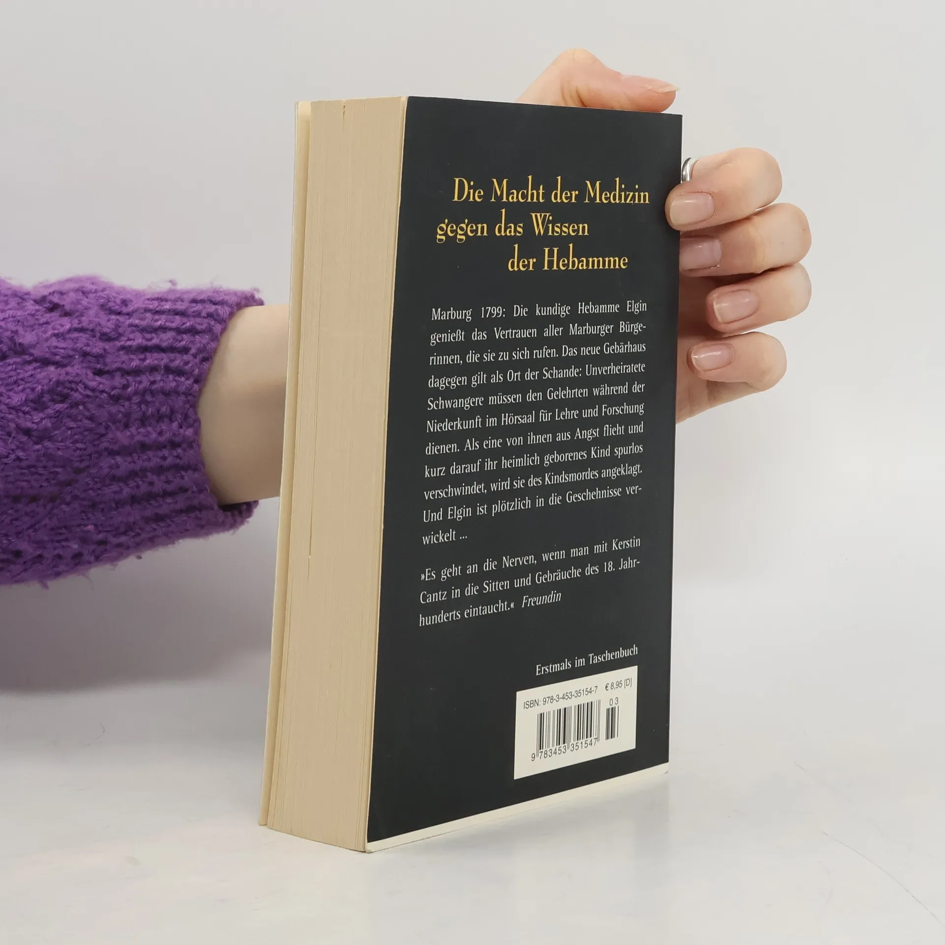 Die Macht der Medizin gegen das geheime Wissen der Hebamme Marburg, 1799: Seit Ärzte die Geburtshilfe zum akademischen Fach erheben, finden Entbindungen im Gebärhaus statt – unter menschenunwürdigen Bedingungen, wie die Hebammenschülerin Gesa bald herausfindet. Deshalb vertrauen sich die Marburgerinnen lieber der geheimnisvollen Elgin an, auch wenn die Obrigkeiten das Wirken der erfahrenen Hebamme als Pfuscherei abtun. Als die selbstbewusste Elgin sich weigert, mit dem Gebärhaus zusammenzuarbeiten, kommt es zu einem folgenschweren Machtkampf … Ein spannungsgeladener historischer Roman mit kriminalistischen Elementen.