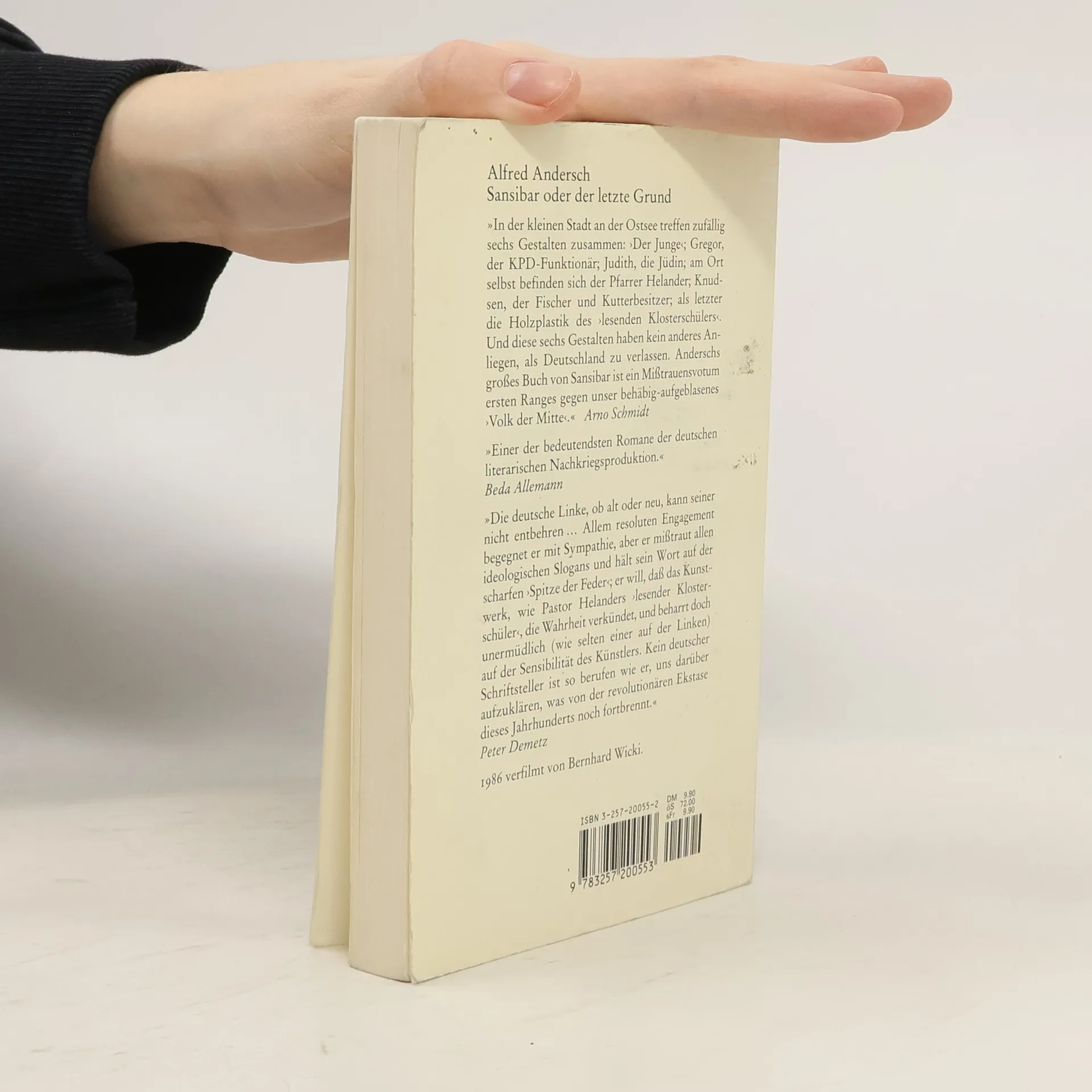 In einer kleinen Stadt an der Ostsee treffen zufällig sechs Gestalten zusammen: ›Der Junge‹; Gregor, der KPD-Funktionär; Judith, die Jüdin; am Ort selbst befinden sich der Pfarrer Helander; Knudsen, der Fischer und Kutterbesitzer; als letzter die Holzplastik des ›Lesenden Klosterschülers‹. Und diese sechs Gestalten haben kein anderes Anliegen, als Deutschland zu verlassen... Alfred Anderschs großes Buch von Sansibar ist ein Mißtrauensvotum ersten Ranges gegen unser behäbig aufgeblasenes ›Volk der Mitte‹.