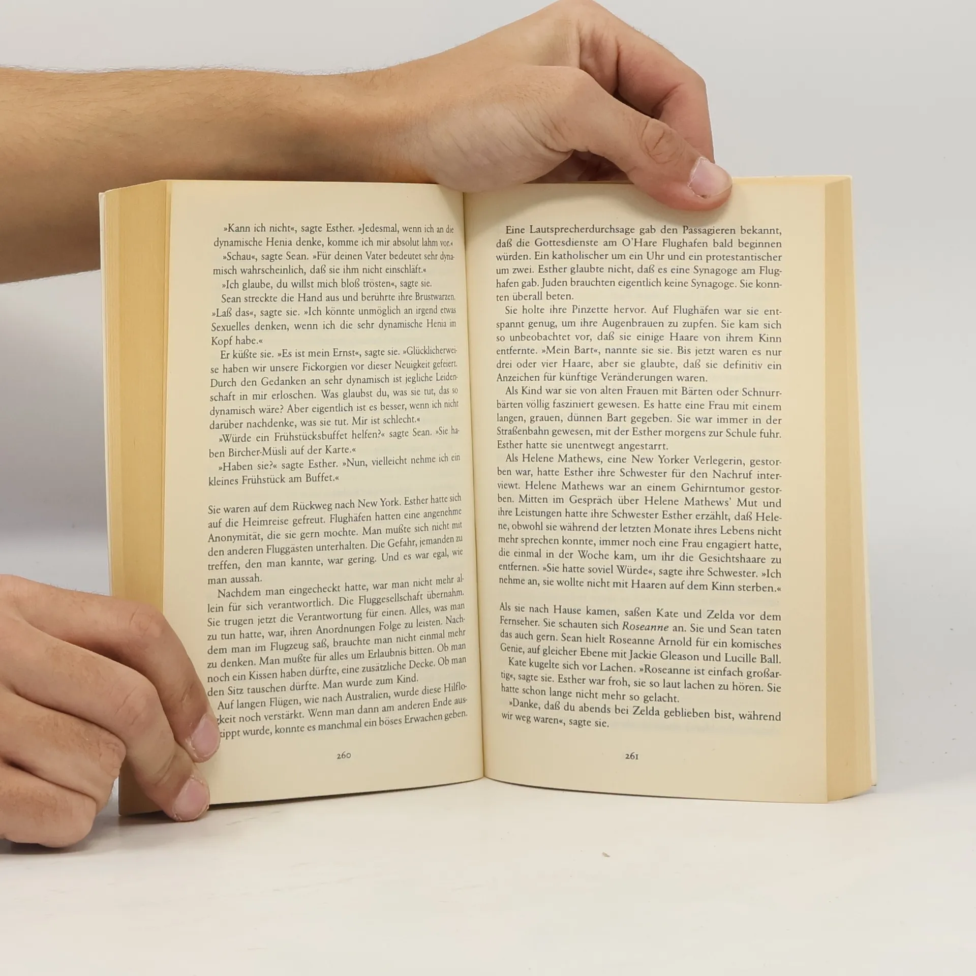 Einfach so erzählt die Geschichte einer Frau, die in New York zu Hause ist. Sie schreibt Nachrufe für eine Zeitung, lebt mit ihrem Ehemann, einem Künstler, in einem weitläufigen Loft, hat drei aufmüpfige, aber wohlgeratene Kinder, und wenig Außergewöhnliches, nichts Dramatisches drängt sich in den Ablauf ihrer Tage. Das Außergewöhnliche liegt in ihr selbst, in ihrer Art, die Umwelt wahrzunehmen: Soll sie ein koscheres Huhn kaufen, oder darf sie auf die Instanthühnerbrühe zurückgreifen? Kann sie sich von den reichen Gastgebern mit deren Mercedes zur Dinnerparty kutschieren lassen? Ihre Lebensgeschichte – sie ist die Tochter jüdischer Eltern, die den Holocaust überlebt haben – ist immer präsent, und ihr Beruf – durch den sie häufig Begräbnisse zumeist völlig fremder Menschen besuchen muß – verstärkt das Gefühl für die Zerbrechlichkeit des Glücks.
