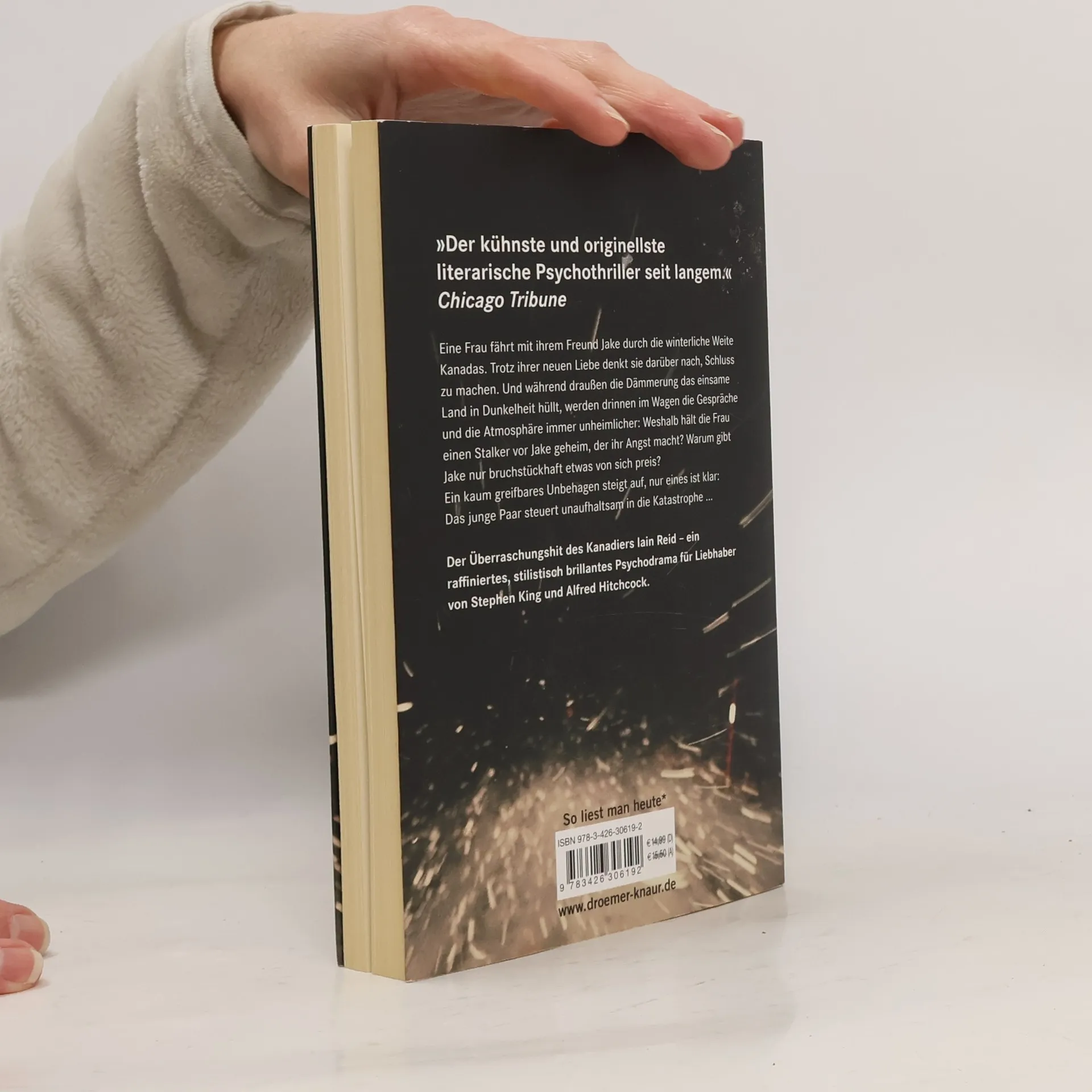 Der Überraschungs-Hit des Kanadiers Iain Reid - subtiler Psycho-Horror für Fans von Stephen King und Hitchcock Eine Frau fährt mit ihrem neuen Freund Jake durch die winterliche Weite Kanadas. Trotz ihrer besonderen Verbindung denkt sie darüber nach, die Sache zu beenden. Und während draußen die Dämmerung das einsame Land in Dunkelheit hüllt, werden drinnen im Wagen Gespräche und Atmosphäre immer unheimlicher: Weshalb hält die Erzählerin einen Stalker vor Jake geheim, der ihr seit längerem Angst macht? Warum gibt Jake nur bruchstückhaft etwas von sich preis? Wort für Wort steigt aus den Seiten ein kaum greifbares Unbehagen auf, denn eines ist von vornherein klar: Das junge Paar steuert unaufhaltsam in die Katastrophe ... Ein raffiniertes, stilistisch brillantes Psycho-Drama über Identität, menschliche Abgründe, Einsamkeit und Wahn - „Der kühnste und originellste literarische Psycho-Thriller seit langem.“ Chicago Tribune
