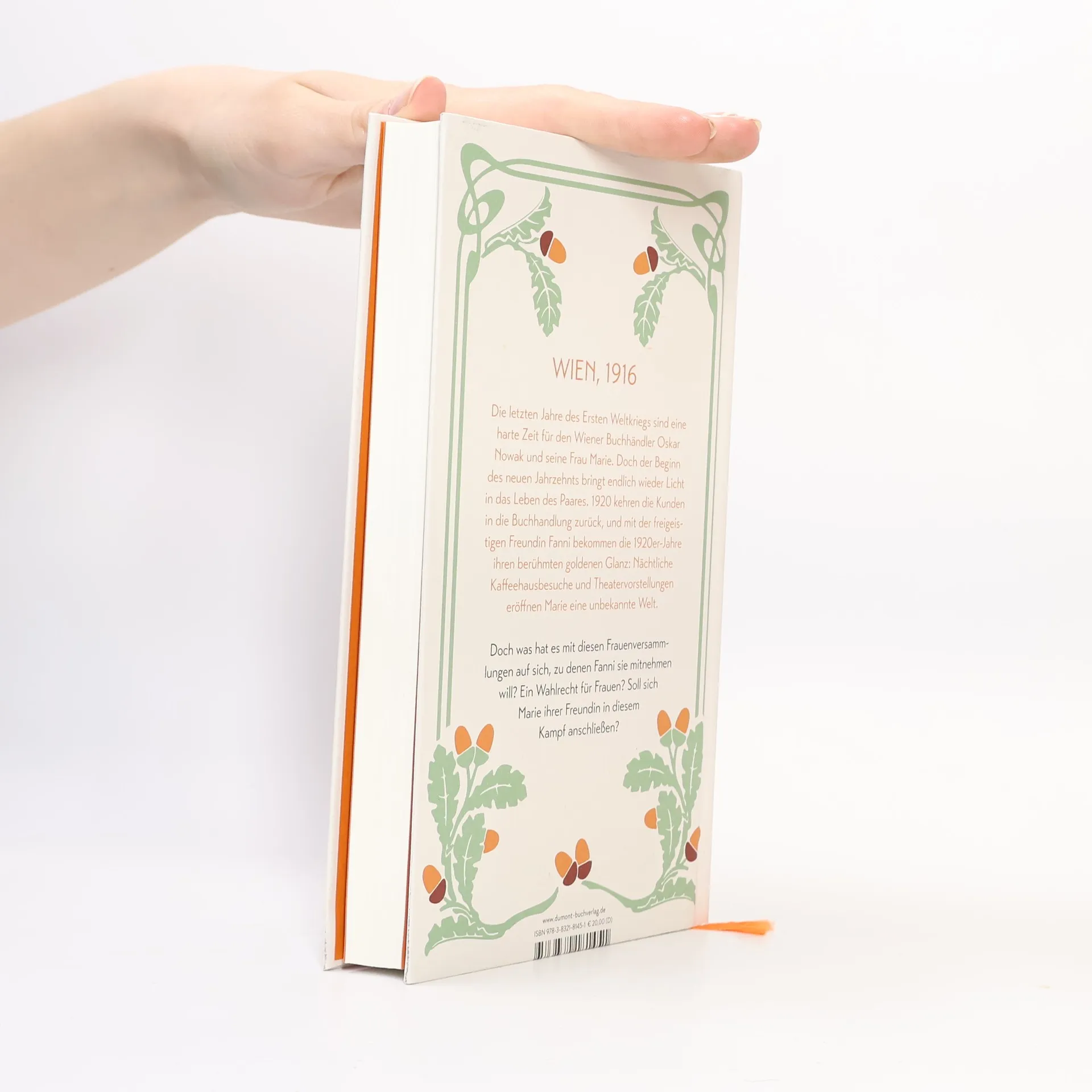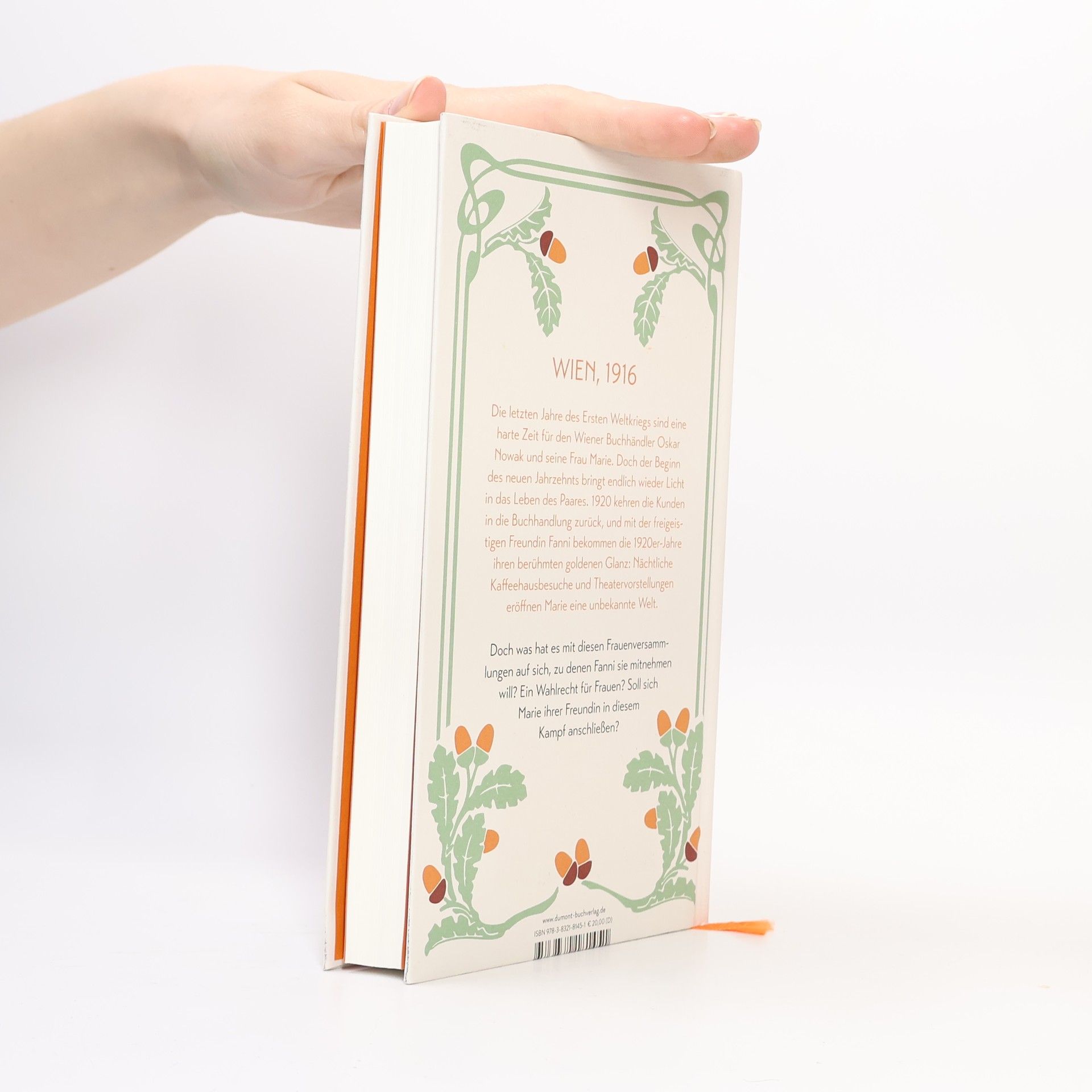 Wien 1916. In den letzten Jahren des Ersten Weltkriegs beginnen schwierige Jahre für den Wiener Buchhändler Oskar Novak und seine Frau Marie. Eine Verletzung erspart Oskar eine Rückkehr an die Front, doch Marie ahnt, dass er Dinge erlebt hat, die er wohl nie wieder vergessen wird. Hunger und Not prägen das Wien dieser Jahre, und die kleine Buchhandlung in der Währinger Straße wirft nicht genügend ab. Als die schlimmste Not gelindert ist, wartet das Schicksal 1919 mit einer neuen Prüfung auf: Die Spanische Grippe grassiert in Wien. Erst der Beginn des neuen Jahrzehnts bringt endlich wieder Licht in Maries und Oskars Leben. 1920 wird der kleine Paul geboren, und die Kunden kehren in die Buchhandlung zurück. Und mit der freigeistigen Freundin Fanni Gold kommt der Glanz der 1920er-Jahre: Nächtliche Theater- und Kaffeehausbesuche bringen Abwechslung. Doch was hat es mit diesen Frauenversammlungen auf sich, zu denen Fanni sie mitnehmen will? Ein Wahlrecht für Frauen – soll sich Marie ihrer Freundin in diesem Kampf anschließen?