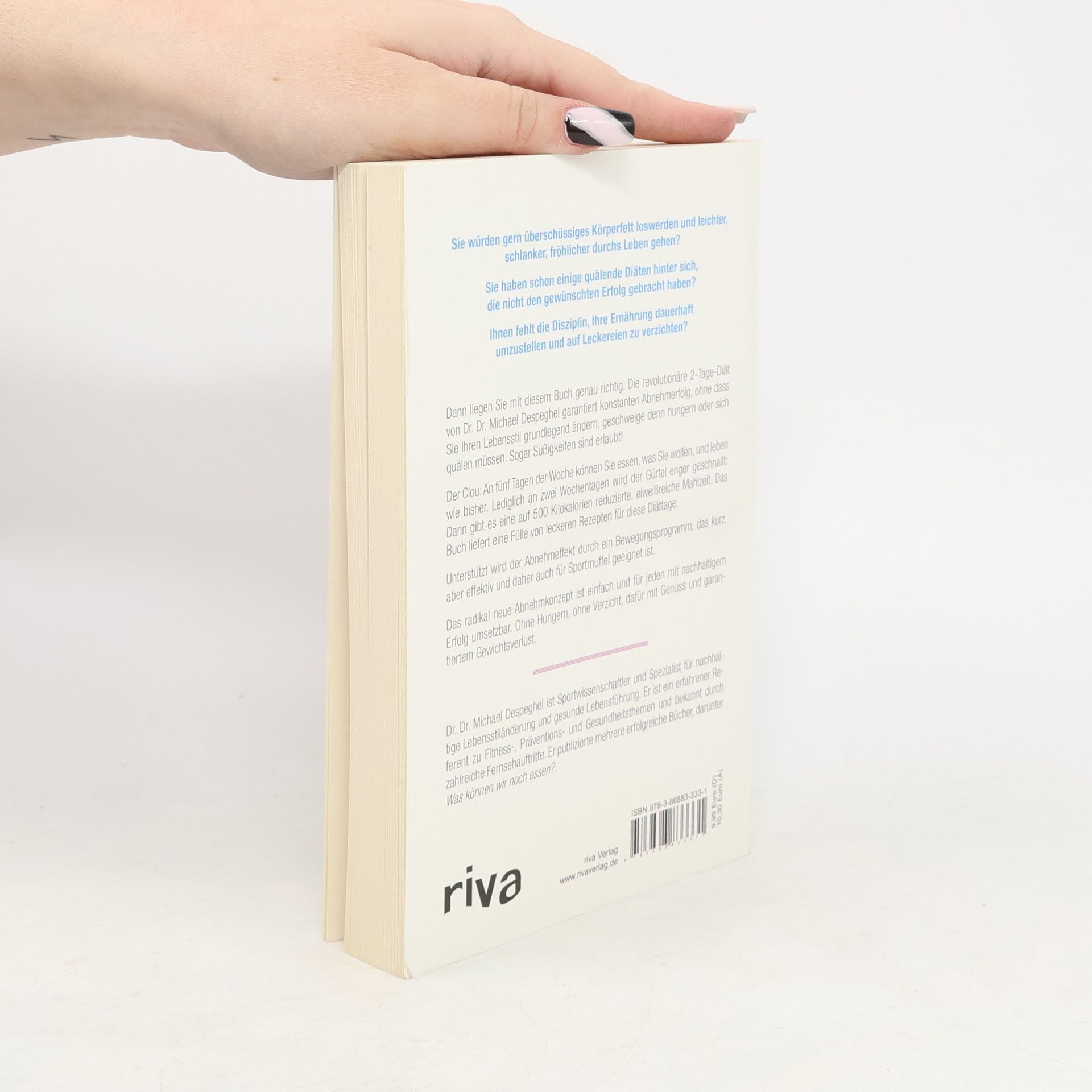 Sie würden gern überschüssiges Körperfett loswerden und leichter, schlanker, fröhlicher durchs Leben gehen? Sie haben schon einige quälende Diäten hinter sich, die nicht den gewünschten Erfolg gebracht haben? Ihnen fehlt die Disziplin, Ihre Ernährung dauerhaft umzustellen und auf Leckereien zu verzichten? Dann liegen Sie mit diesem Buch genau richtig. Die revolutionäre 2-Tage-Diät von Dr. Dr. Michael Despeghel garantiert konstanten Abnehmerfolg, ohne dass Sie Ihren Lebensstil grundlegend ändern, geschweige denn hungern oder sich quälen müssen. Sogar Süßigkeiten sind erlaubt! Der Clou: An fünf Tagen der Woche können Sie essen, was Sie wollen, und leben wie bisher. Lediglich an zwei Wochentagen wird der Gürtel enger geschnallt: Dann gibt es eine auf 500 Kilokalorien reduzierte, eiweißreiche Mahlzeit. Das Buch liefert eine Fülle von leckeren Rezepten für diese Diättage. Unterstützt wird der Abnehmeffekt durch ein Bewegungsprogramm, das kurz, aber effektiv und daher auch für Sportmuffel geeignet ist. Das radikal neue Abnehmkonzept ist einfach und für jeden mit nachhaltigem Erfolg umsetzbar. Ohne Hungern, ohne Verzicht, dafür mit Genuss und garantiertem Gewichtsverlust.