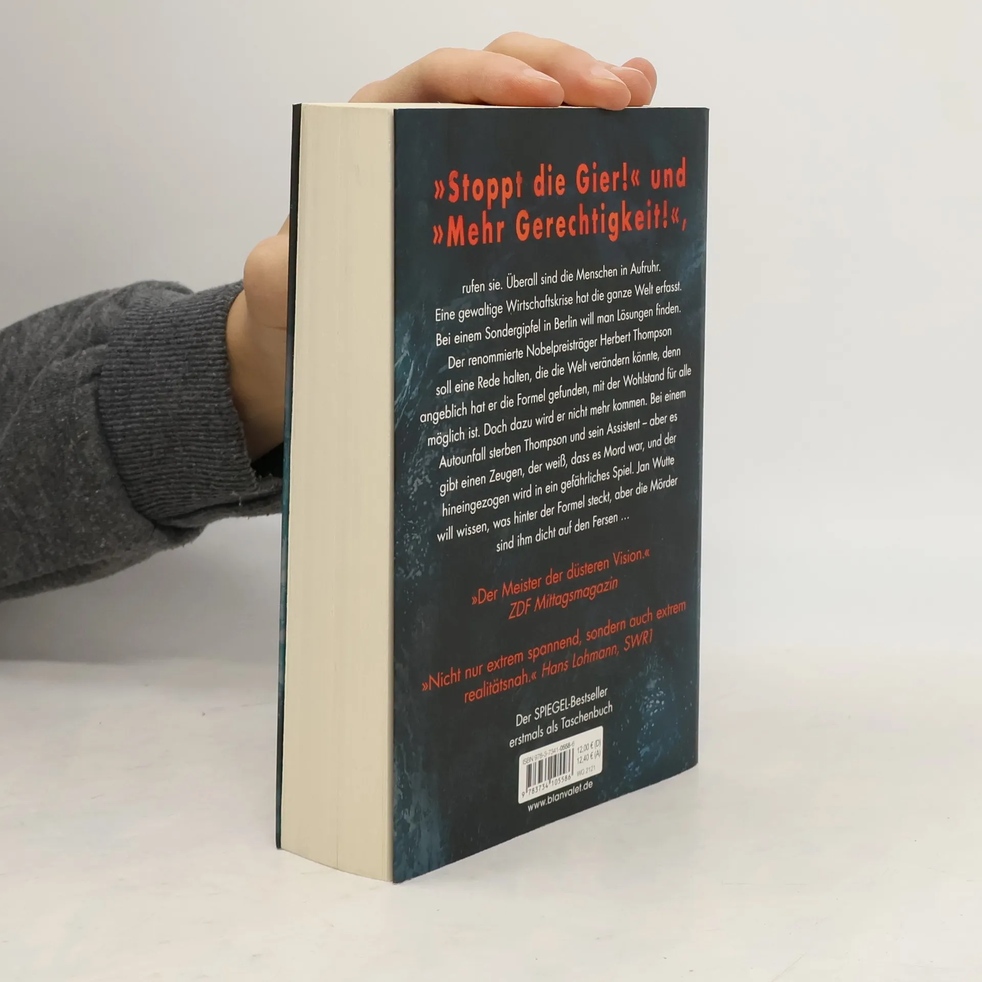 Höher, schneller, weiter ... Bis eine gewaltige Krise alles infrage stellt! Ein rasanter Thriller, der den Finger auf den wunden Punkt unserer Gesellschaft legt. Auf der ganzen Welt fordern die Menschen Gerechtigkeit und ein Ende der Gier. Bei einem Sondergipfel in Berlin soll Nobelpreisträger Herbert Thompson eine bahnbrechende Rede halten, die den Schlüssel zu Wohlstand für alle verspricht. Doch ein Autounfall beendet sein Leben und das seines Assistenten. Ein Zeuge weiß, dass es Mord war und wird in ein gefährliches Spiel verwickelt. Jan Wutte ist entschlossen, die Wahrheit hinter der Formel zu entdecken, während die Mörder ihm dicht auf den Fersen sind. Die Geschichte entfaltet sich in einer rasanten Flucht durch die Berliner Hausbesetzer-Szene und Nobelhotels, die den Leser über 448 Seiten fesselt. Die komplexe Wirtschaftstheorie des britischen Wissenschaftlers wird in eine einfache Bauernfabel verpackt, was die Spannung zusätzlich erhöht. Lesen Sie auch den aktuellen Thriller von Marc Elsberg: °C - Celsius! Ein Klimathriller, der alles auf den Kopf stellt. Außerdem erhältlich: BLACKOUT. Morgen ist es zu spät. Auch als Premiumausgabe – mit einer exklusiven Kurzgeschichte von Marc Elsberg und weiteren Extras! ZERO. Sie wissen, was du tust. HELIX: Sie werden uns ersetzen. Der Fall des Präsidenten.