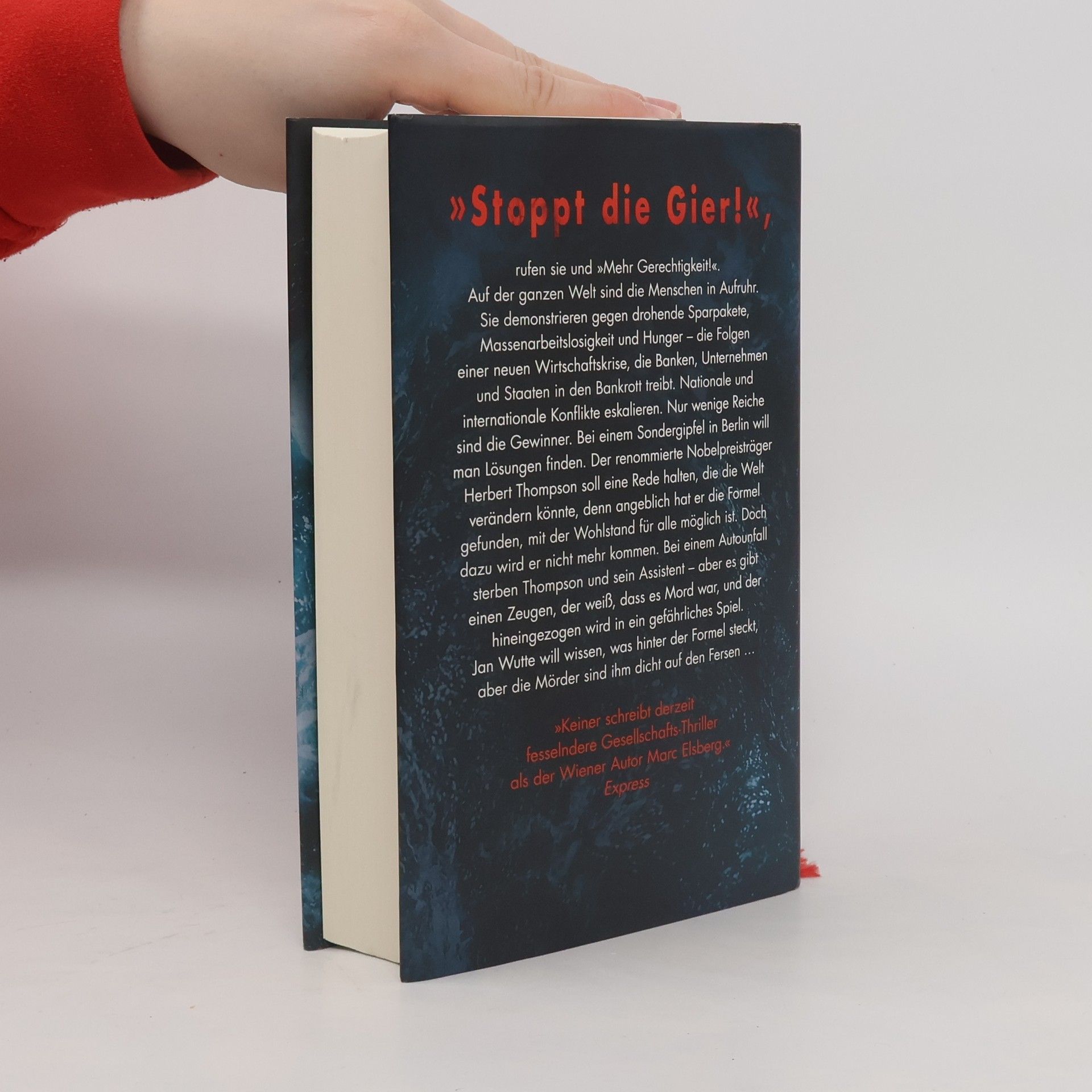 Höher, schneller, weiter ... Bis eine gewaltige Krise alles infrage stellt! Ein rasanter Thriller, der den Finger auf den wunden Punkt unserer Gesellschaft legt. Weltweit demonstrieren Menschen gegen drohende Sparpakete, Massenarbeitslosigkeit und Hunger – die Folgen einer neuen Wirtschaftskrise, die Banken, Unternehmen und Staaten in den Bankrott treibt. Nationale und internationale Konflikte eskalieren, während nur wenige Reiche profitieren. Bei einem Sondergipfel in Berlin soll der Nobelpreisträger Herbert Thompson eine bahnbrechende Rede halten, da er angeblich die Formel für Wohlstand für alle entdeckt hat. Doch ein Autounfall beendet sein Leben und das seines Assistenten. Ein Zeuge, der weiß, dass es Mord war, wird in ein gefährliches Spiel verwickelt. Jan Wutte ist entschlossen, das Geheimnis hinter der Formel zu lüften, doch die Mörder sind ihm dicht auf den Fersen. Eine rasante Flucht durch die Berliner Hausbesetzer-Szene und Nobelhotels hält den Leser über 448 Seiten in Atem. Die komplexe Wirtschaftstheorie hat der Autor in eine einfache Bauernfabel verpackt. Lesen Sie auch den aktuellen Thriller von Marc Elsberg: °C - Celsius! Ein Klimathriller, der alles auf den Kopf stellt. Weitere Titel sind BLACKOUT, ZERO und HELIX.