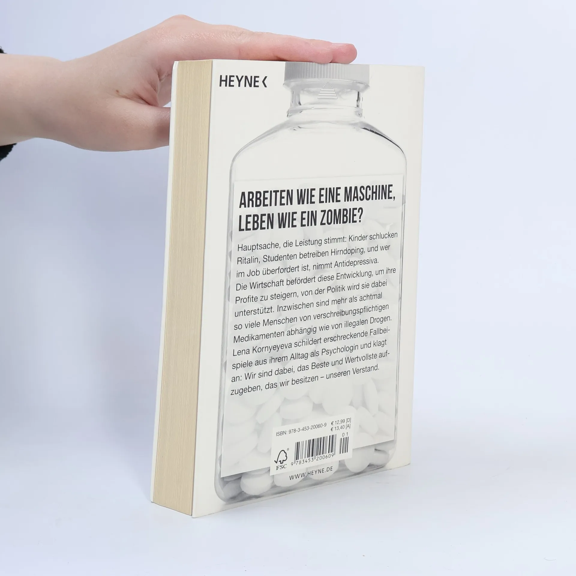 Damit die Leistung stimmt, schlucken Kinder Ritalin; Studenten betreiben Hirndoping, und wer im Job überfordert ist, nimmt Antidepressiva. Inzwischen sind in Deutschland mehr als achtmal so viele Menschen von verschreibungspflichtigen Medikamenten abhängig wie von illegalen Drogen. Lena Kornyeyeva erklärt, warum Wirtschaft und Politik gleichermaßen davon profitieren, und schildert erschreckende Fallbeispiele aus ihrem Alltag als Psychologin. Sind wir dabei, das Beste und Wertvollste aufzugeben, was wir besitzen: unseren Verstand?