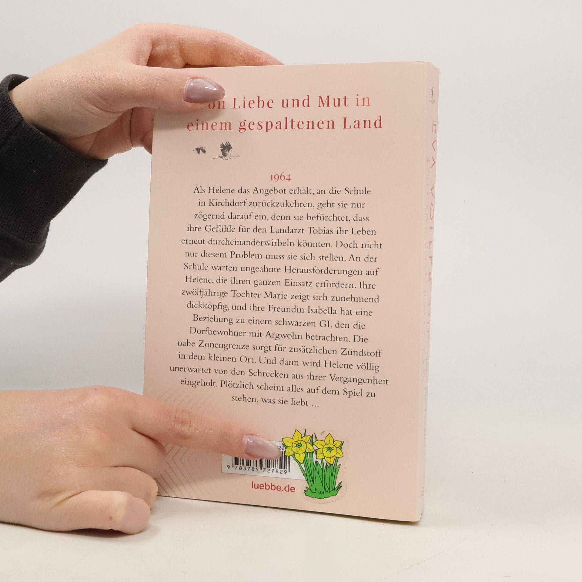 "1964: Als Helene das Angebot erhält, an die Schule in Kirchdorf zurückzukehren, zögert sie zunächst. Sie befürchtet, dass ihre Gefühle für den Landarzt Tobias ihr Leben erneut durcheinanderwirbeln könnten. Doch die berufliche Herausforderung lockt, und sie geht das Wagnis ein. Bei ihrer Ankunft muss sie feststellen, dass die Stationierung amerikanischer Truppen die Spannungen in dem kleinen Ort an der deutsch-deutschen Grenze noch verstärken. Helenes Freundin Isabella erwartet ein Kind von einem schwarzen GI, den die Nachbarn mit Argwohn behandeln. Und auch beruflich kommen auf die junge Lehrerin Probleme zu, mit denen sie nicht rechnen konnte ... " -- various websites, similar to the synopsis on the cover