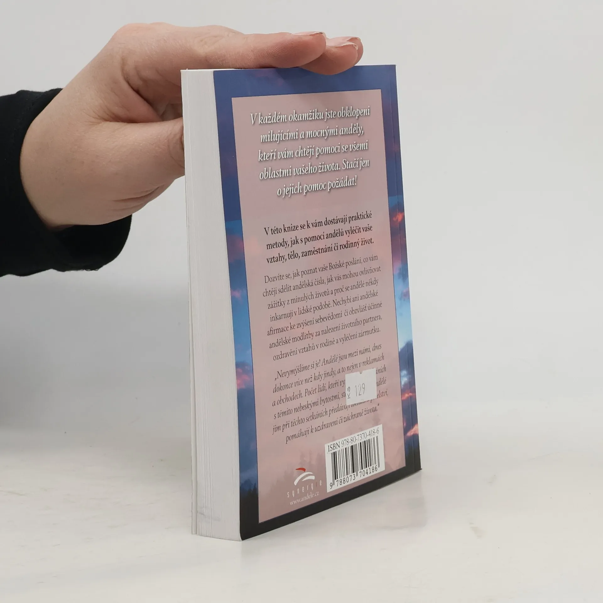 „Nevymýšlíme si je! Andělé jsou mezi námi, dnes dokonce více než kdy jindy, a to nejen v reklamách a obchodech. Počet lidí, kteří vypovídají o setkáních s těmito nebeskými bytostmi stále narůstá. Andělé jim v při těchto setkáních předávají aktuální poselství, pomáhají k uzdravení či záchraně života. Andělé jsou zde, aby nás učili, že Boží láska je odpovědí na všechny otázky a obtíže. Jsou zde, aby nás vyléčili z následků strachu. Jsou mocnými léčiteli a my s nimi můžeme spolupracovat a umocnit tak jejich snažení. Čím více budeme anděly zvát do svého života, tím jasněji se v našich životech odrazí velkolepost nebes. Léčivá moc andělů nemá hranic. Mohou nám pomoci vylepšit naše vztahy, zaměstnání, finanční záležitosti i bydlení a vyřešit jakékoli další problémy...“ NOVÉ BROŽOVANÉ VYDÁNÍ!