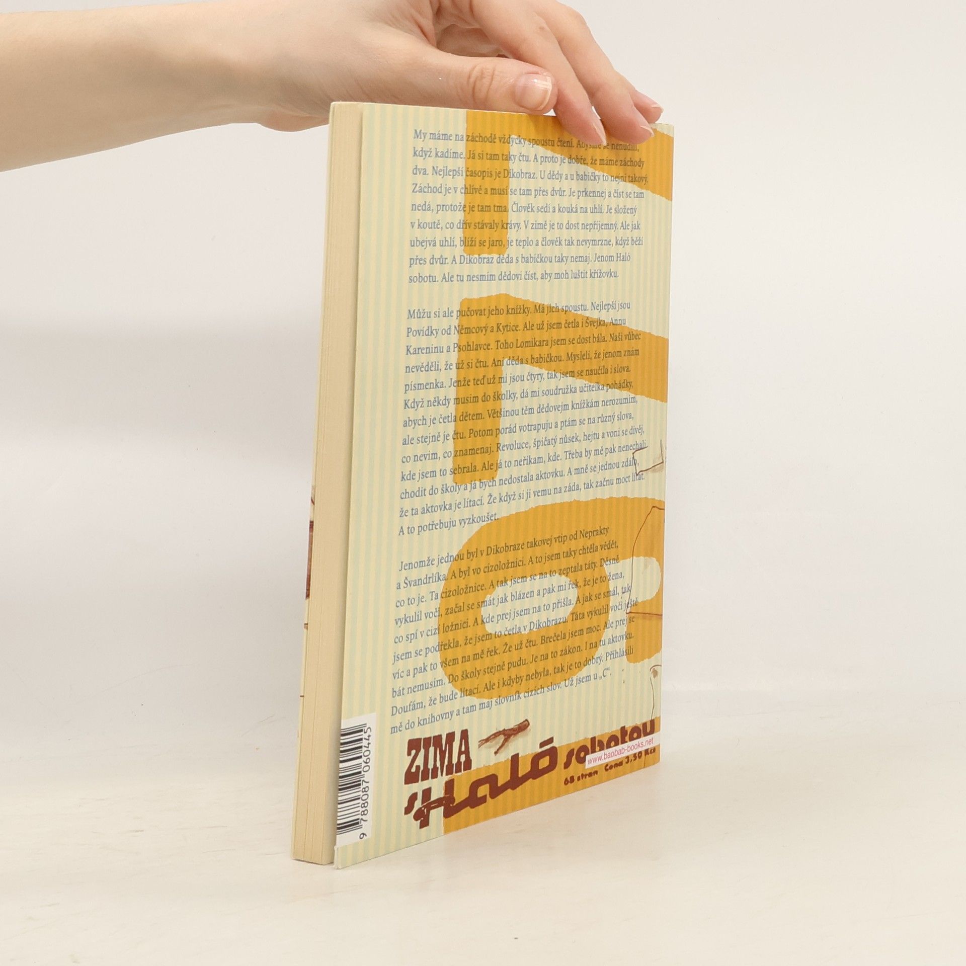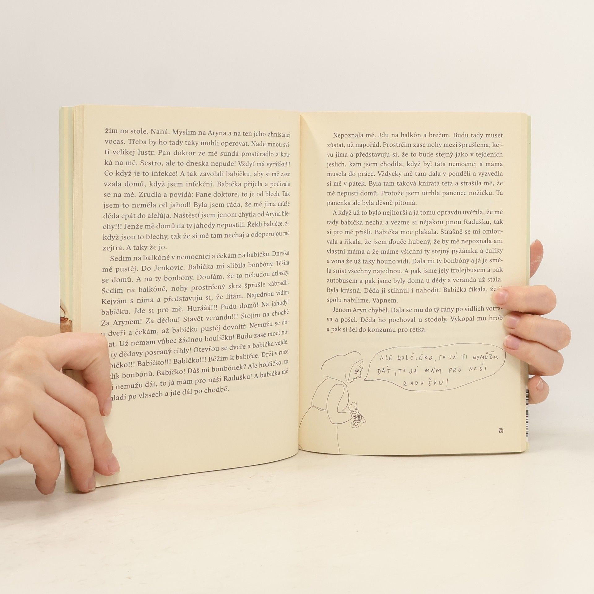 Třináct povídek o dětství svébytné písničkářky, muzikantky a textařky Radůzy. Přesvědčivě a s humorem načrtává Radůza realitu sklonku 70. let. Líčí dětství na venkově očima hubené svéhlavé holčičky, která už ve svých čtyřech letech má na život jasný názor, a jejím prostřednictvím vypráví historky rodinné i vesnické a vykresluje citlivý literární obraz svých prarodičů i rodinných peripetií. V povídkách s lapidárními názvy (Veranda, Kondor, Zavinovačka atd.) vykresluje babičku a dědu a především jejich venkovský způsob života - od všudypřítomného koloběhu: pouť, narozeniny, práce na dvoře, zabíjení králíků, nemoci psů, malé vesnické katastrofy, po nepodstatné detaily, které však dodávají textu naprosto hmatatelný rozměr a přenášejí nás do atmosféry vesnice, která dnes už v podstatě zanikla. Radůza vládne temperametním prozaickým talentem, který v tomto případě oživila i krajovým nářečím z východních Čech. A stejně jako ve svých písňových textech dokázala i zde vytvořit výborný koncentrát nabitý energií.