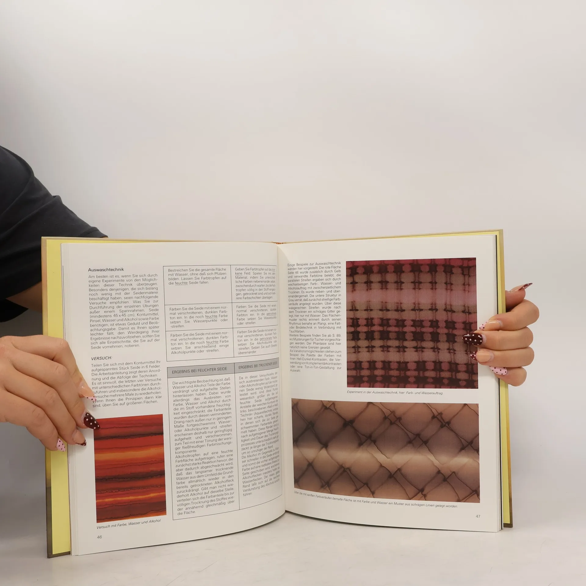 Reich illustrierte Einführung in die Geschichte der Seidenherstellung und die Techniken der Seidenmalerei mit zahlreichen Anregungen für Anfänger und Fortgeschrittene (Quelle: http://www.bsz-bw.de/).