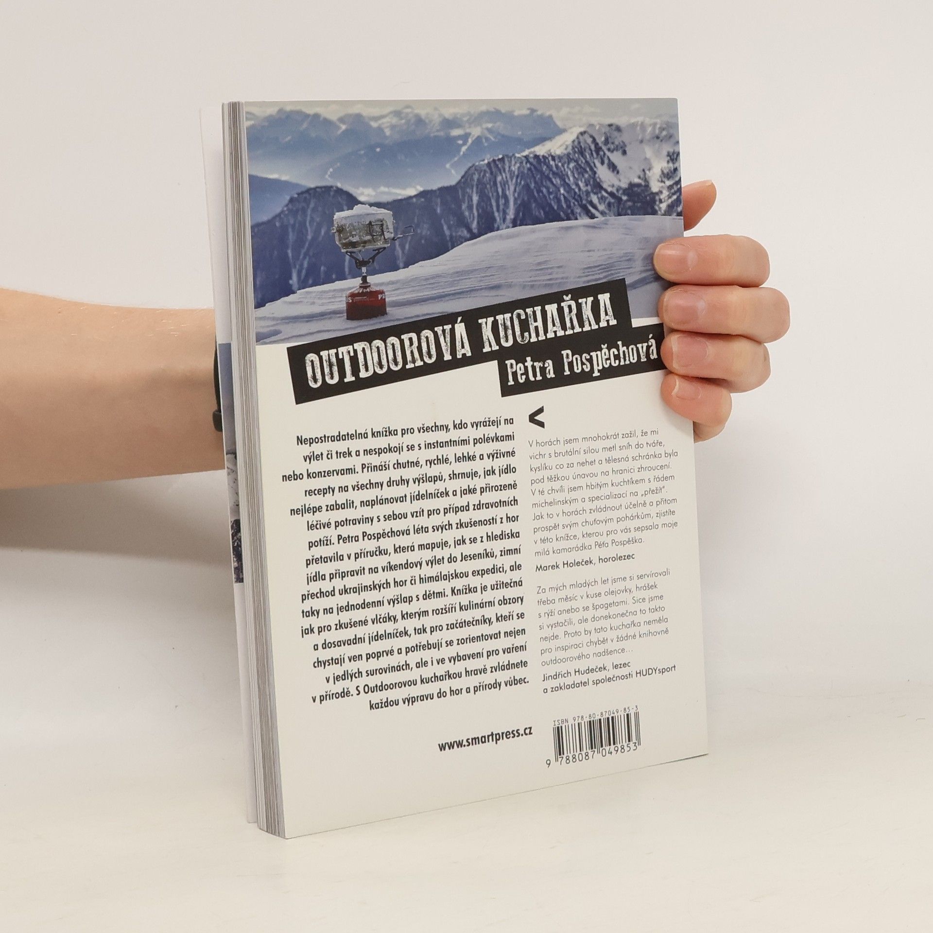 Nepostradatelná kniha pro všechny, kteří vyrážejí na trek či výlet a nespokojí se s instantními polévkami, konzervami nebo smažákem z restaurace. Přináší chutné a výživné recepty na všechny druhy výšlapů. Jak jídlo efektivně zabalit? Jak si naplánovat jídelníček? Jak využít přirozených léčivých potravin pro případ zdravotních potíží? Autorka z vlastních zkušeností připravuje unikátní publikaci, která zmapuje, jak se po všech kulinárních stránkách připravit např. na víkendový výšlap v Jeseníkách, zimní přechod ukrajinských hor či himalájskou expedici, ale také na výpravu s dětmi, splav vodních toků nebo cyklistickou dovolenou. Redaktorka Petra Pospěchová je autorkou knihy o kulinárních tradicích Česka Regionální kuchařka – Všechny chutě Čech, Moravy a Slezska.