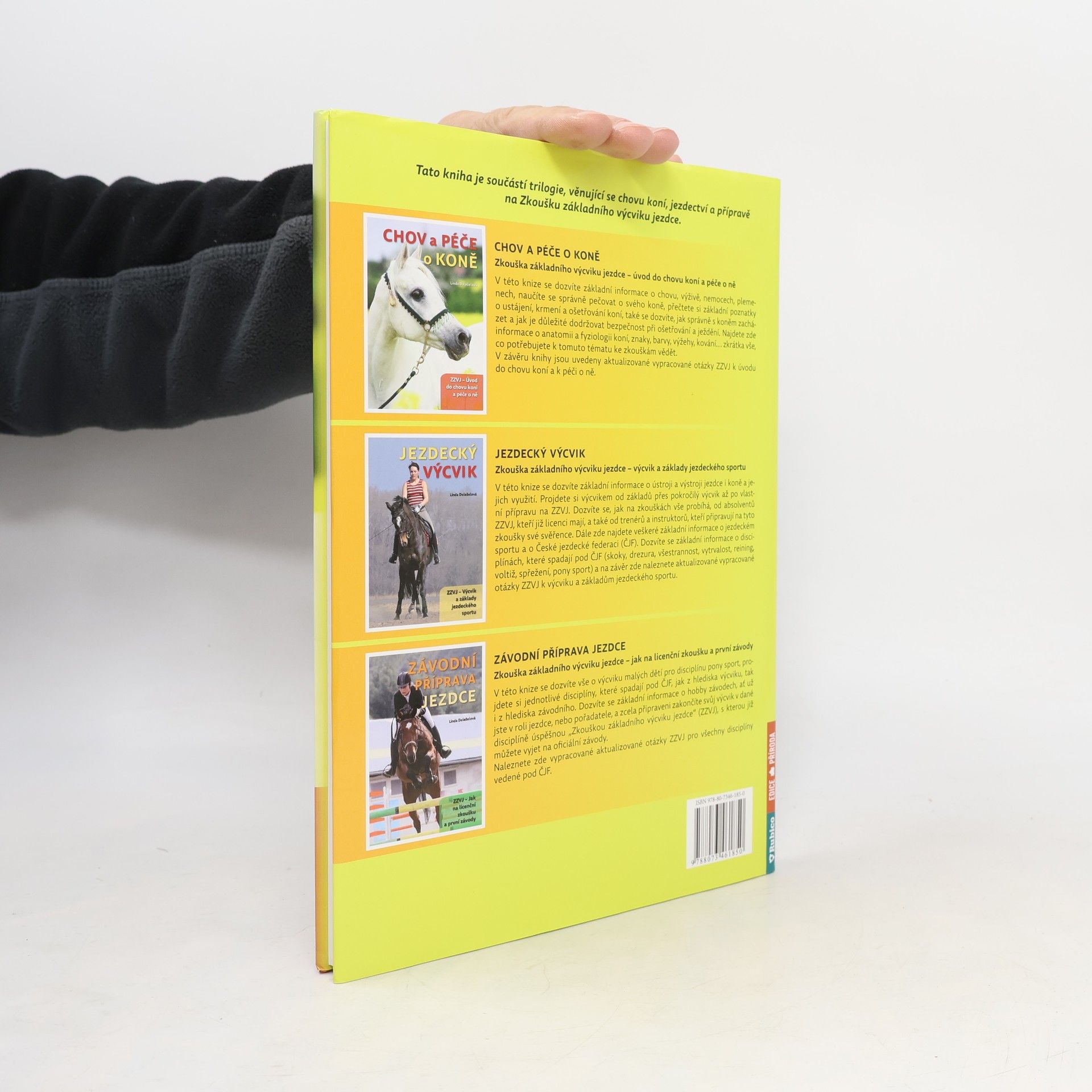 Zkouška základního výcviku jezdce - úvod do chovu koní a péče o ně V této knize se dozvíte základní informace o chovu, výživě, nemocech, plemenech, naučíte se správně pečovat o svého koně, přečtete si základní poznatky o ustájení, krmení a ošetřování koní, také se dozvíte, jak správně s koněm zacházet a jak je důležité dodržovat bezpečnost při ošetřování a ježdění. Najdete zde informace o anatomii a fyziologii koní, znaky, barvy, výžehy, kování... zkrátka vše, co potřebujete k tomuto tématu ke zkouškám vědět. V závěru knihy jsou uvedeny aktualizované vypracované otázky ZZVJ k úvodu do chovu koní a k péči o ně.