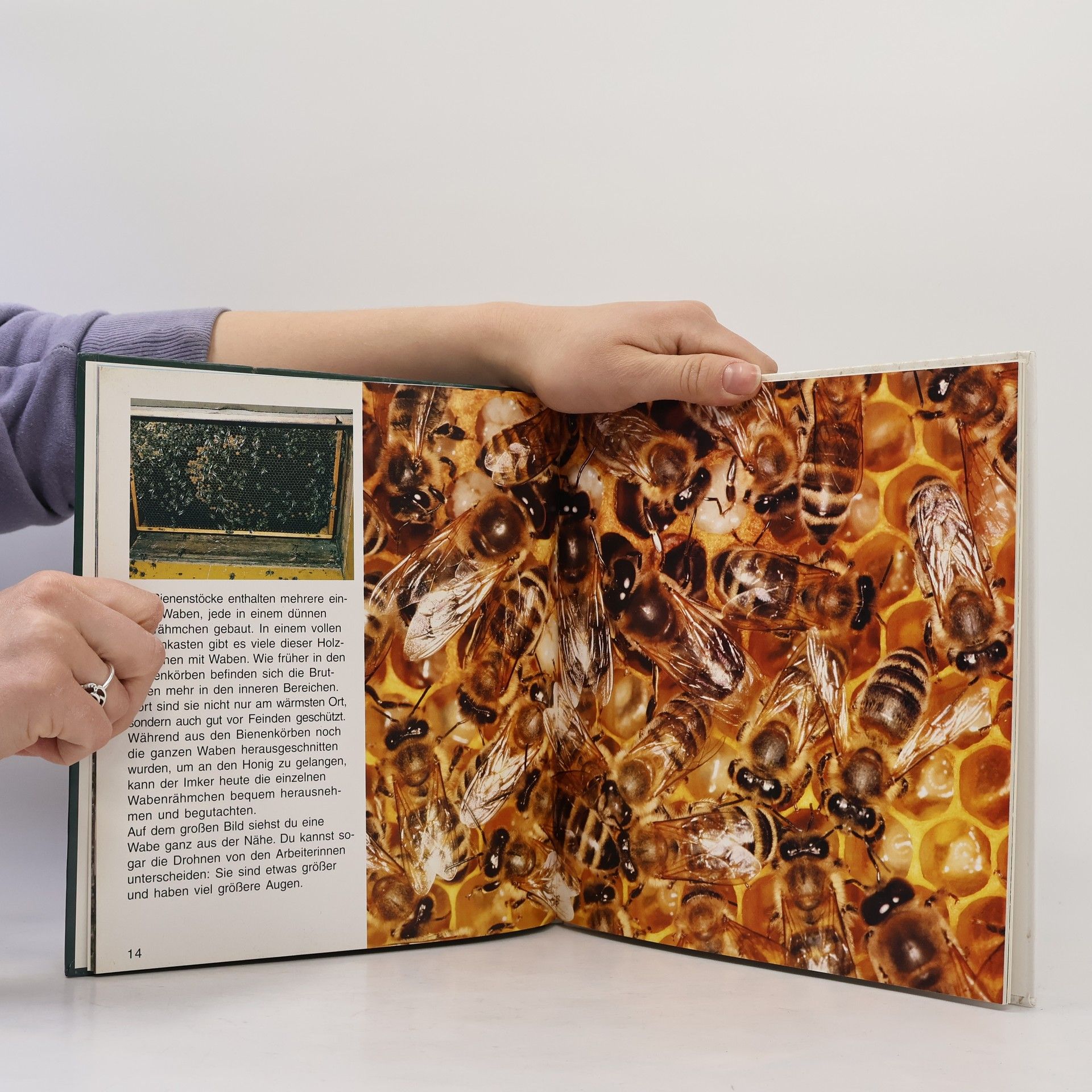 Honigbienen sind Nutztiere, denn sie bestäuben Nutzpflanzen und sorgen dafür, dass Früchte wachsen können. Die nützlichen Bienen leben zu Tausenden in einem wohlgeordneten Staat, an dessen Spitze die Bienenkönigin steht. Das Buch erzählt, wie Bienen leben und welche Aufgaben sie haben. Es zeigt, dass sie zum Leben eine gesunde Umwelt mit blühenden Randstreifen und Gärten brauchen.