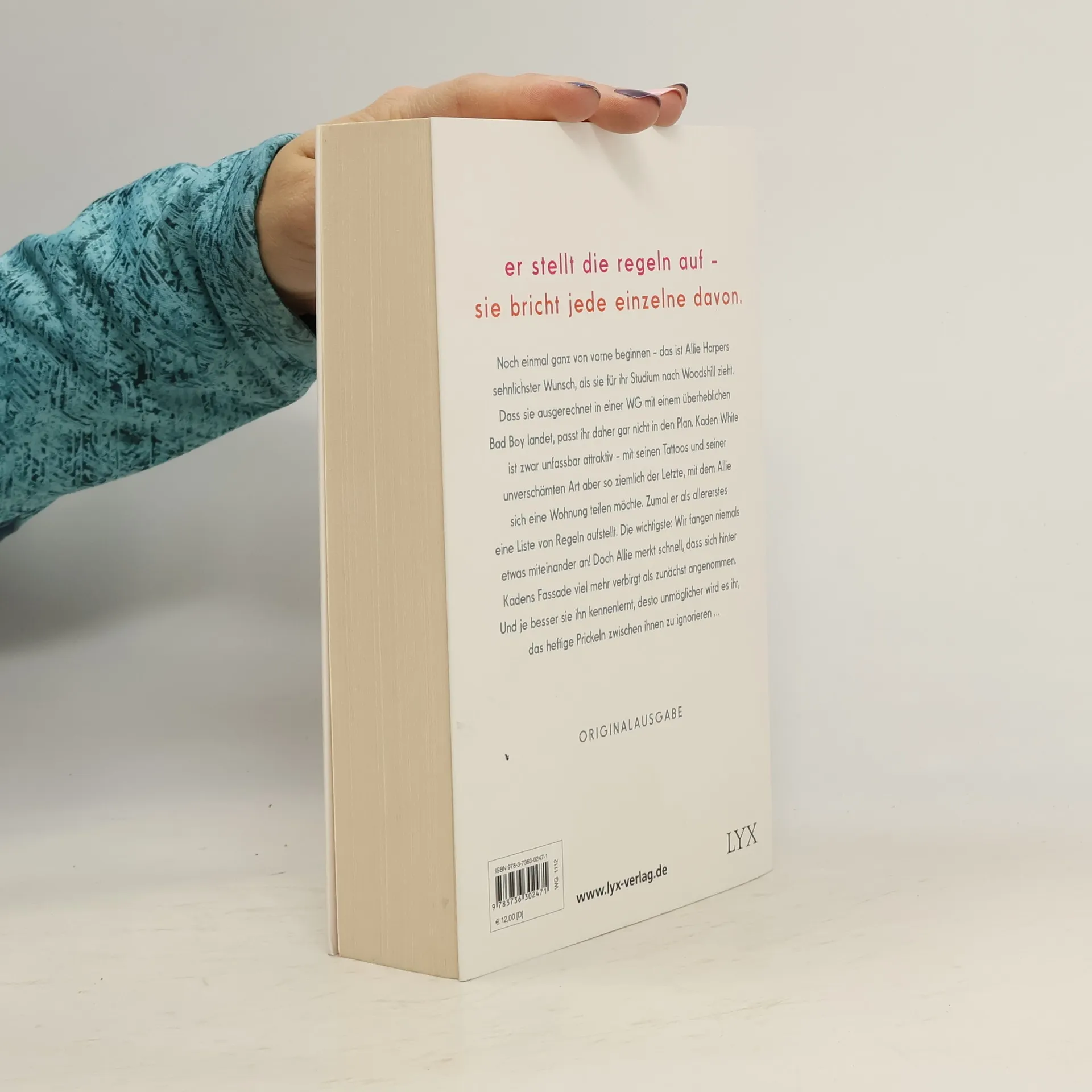 Er stellt die Regeln auf - sie bricht jede einzelne davon. Noch einmal ganz von vorne beginnen - das ist Allie Harpers sehnlichster Wunsch, als sie für ihr Studium nach Woodshill zieht. Dass sie ausgerechnet in einer WG mit einem überheblichen Bad Boy landet, passt ihr daher gar nicht in den Plan. Kaden White ist zwar unfassbar attraktiv - mit seinen Tattoos und seiner unverschämten Art aber so ziemlich der Letzte, mit dem Allie sich eine Wohnung teilen möchte. Zumal er als allererstes eine Liste von Regeln aufstellt. Die wichtigste: Wir fangen niemals etwas miteinander an! Doch Allie merkt schnell, dass sich hinter Kadens Fassade viel mehr verbirgt als zunächst angenommen. Und je besser sie ihn kennenlernt, desto unmöglicher wird es ihr, das heftige Prickeln zwischen ihnen zu ignorieren ... „Lache, weine und verliebe dich. Mona Kasten hat ein Buch geschrieben, das man nicht aus der Hand legen kann!“ ANNA TODD über „Begin Again“ Der Auftaktband der „Again“-Reihe von Platz-1-SPIEGEL-Bestseller-Autorin Mona Kasten