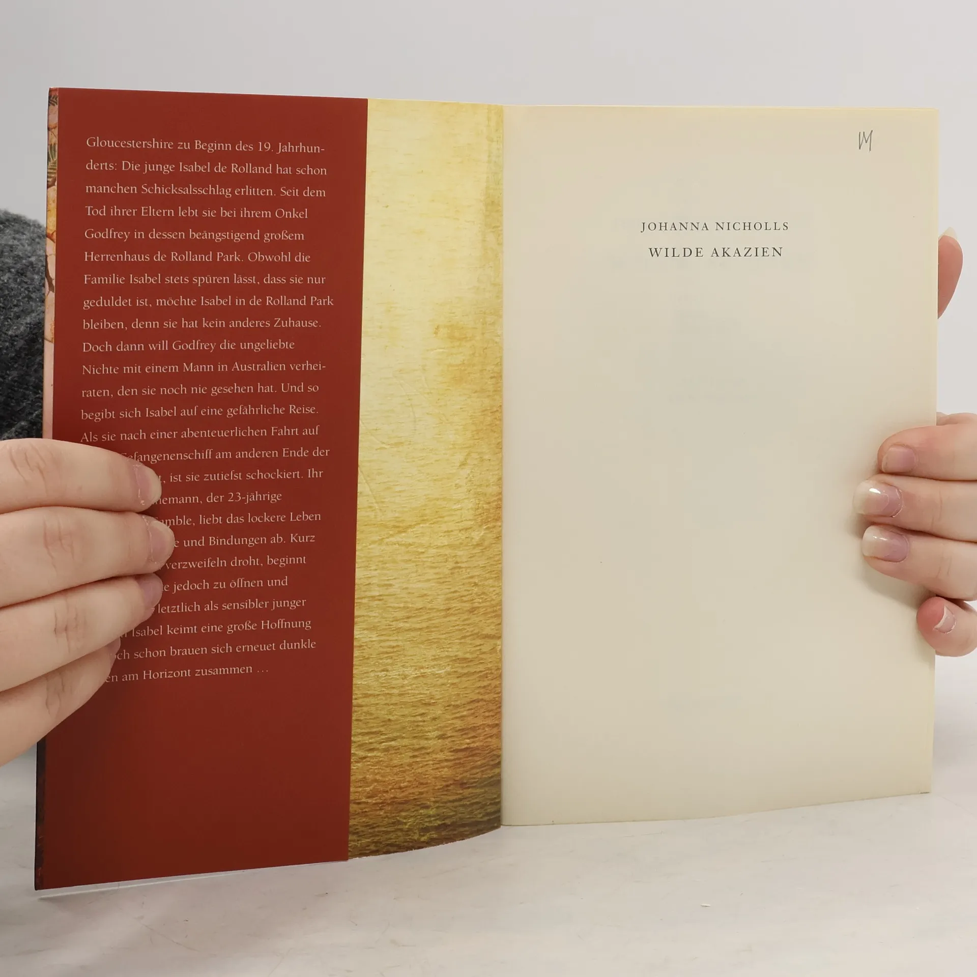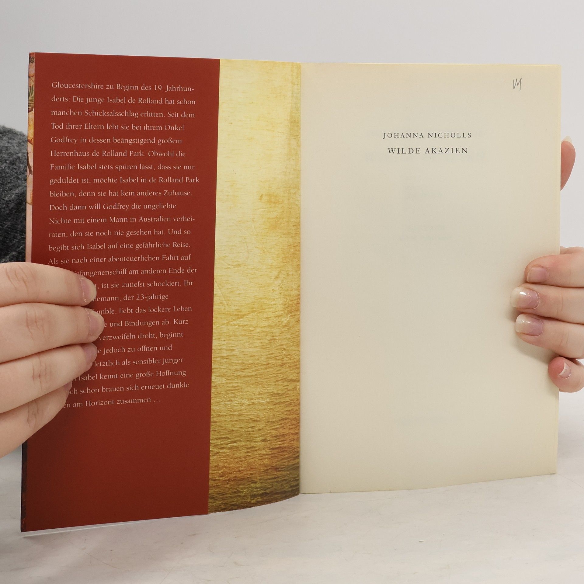 Allein in der Fremde. Gejagt von den Dämonen der Vergangenheit und auf der Suche nach einem Mann, den sie nicht kennt. Gloucestershire im frühen 19. Jahrhundert: Die 17-jährige Isabel de Rolland lebt seit dem Tod ihrer Eltern auf dem Herrenhaus ihres Onkels Godfrey. Trotz ihrer Jugend wurde Isabel schon oft vom Schicksal gebeutelt. Weil er das Mädchen loswerden möchte, das ihm auf der Tasche liegt, will Godfrey seine Nichte mit einem Mann in Australien verheiraten. Und so begibt sich Isabel auf eine gefährliche Reise in eine ungewisse Zukunft. Als sie nach einer abenteuerlichen Fahrt auf einem Gefangenenschiff am anderen Ende der Welt ankommt, ist sie zutiefst schockiert. Ihr zukünftiger Ehemann, der 23-jährige Marmaduke Gamble, liebt das lockere Leben und lehnt Gefühle und Bindungen ab. Kurz bevor Isabel zu verzweifeln droht, beginnt sich Marmaduke jedoch zu öffnen und entpuppt sich als sensibler junger Mann. In Isabel keimt eine große Hoffnung auf. Doch schon ziehen erneut dunkle Wolken am Horizont auf …