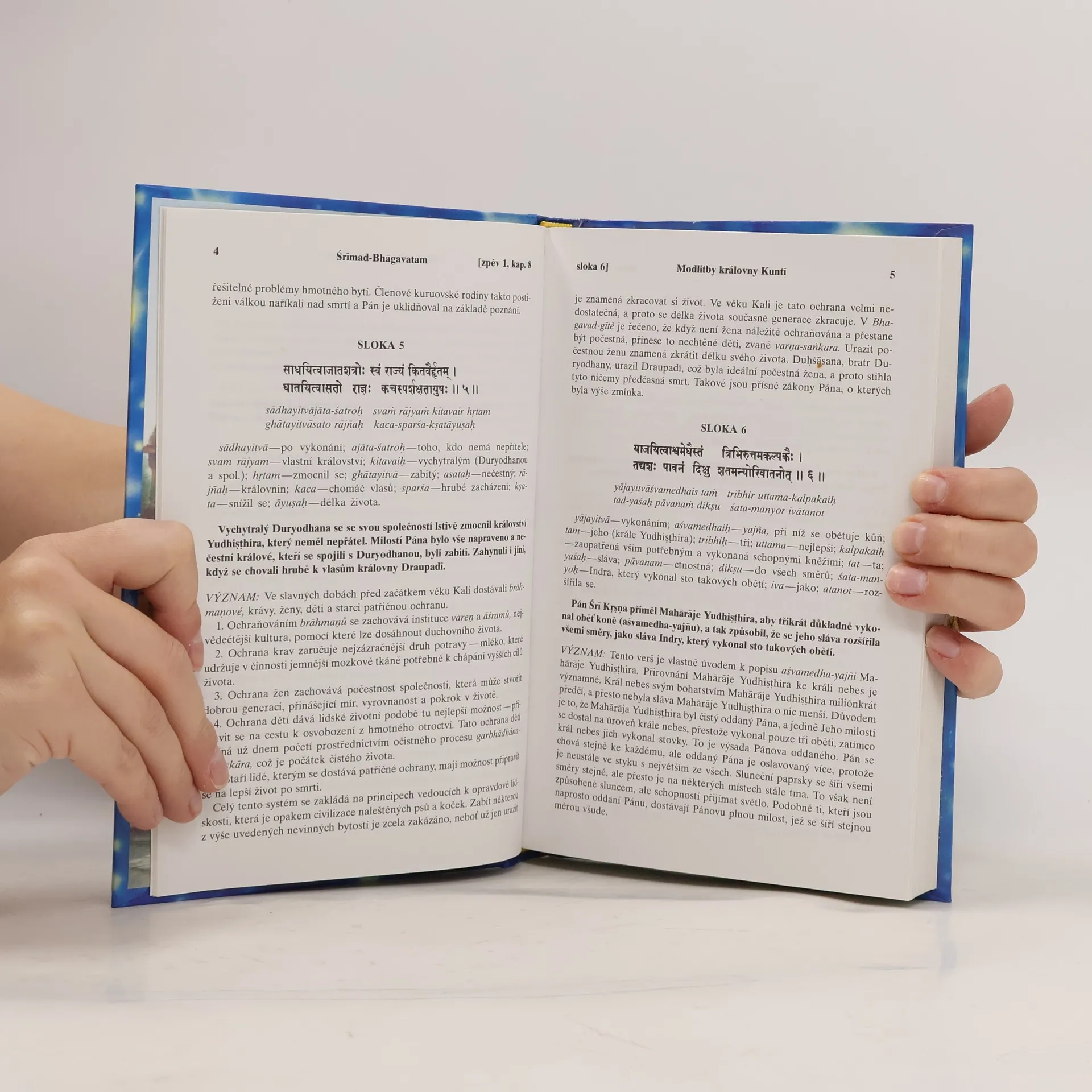 Nábožensko-filozofický text, který dává nahlédnout do indického duchovního odkazu. S původními sanskrtskými texty, přepisem do latinského písma, českými synonymy, překlady a podrobnými výklady.