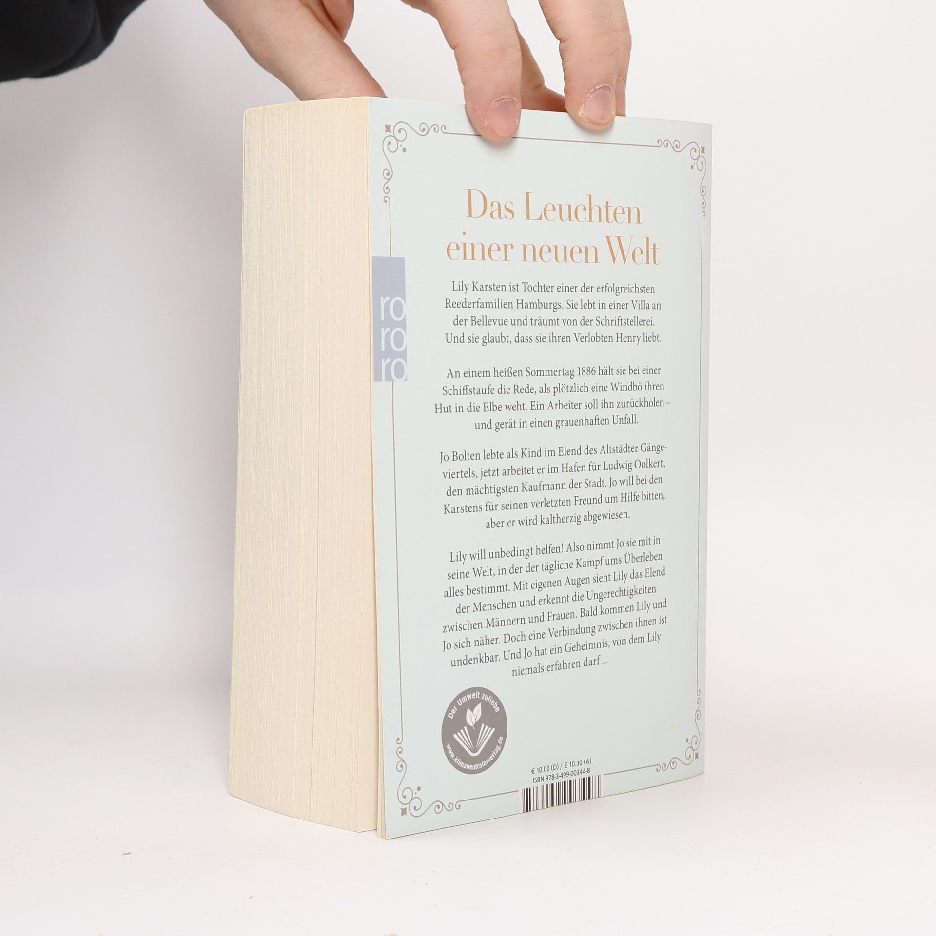 Das Leuchten einer neuen Welt Lily Karsten ist Tochter einer der erfolgreichsten Reederfamilien Hamburgs. Sie lebt in einer Villa an der Bellevue und träumt von der Schriftstellerei. Und sie glaubt, dass sie ihren Verlobten Henry liebt. An einem heißen Sommertag 1886 hält sie bei einer Schiffstaufe die Rede, als plötzlich eine Windbö ihren Hut in die Elbe weht. Ein Arbeiter soll ihn zurückholen – und gerät in einen grauenhaften Unfall. Jo Bolten lebte als Kind im Elend des Altstädter Gängeviertels, jetzt arbeitet er im Hafen für Ludwig Oolkert, den mächtigsten Kaufmann der Stadt. Jo will bei den Karstens für seinen verletzten Freund um Hilfe bitten, aber er wird kaltherzig abgewiesen. Lily will unbedingt helfen! Also nimmt Jo sie mit in seine Welt, in der der tägliche Kampf ums Überleben alles bestimmt. Mit eigenen Augen sieht Lily das Elend der Menschen und erkennt die Ungerechtigkeiten zwischen Männern und Frauen. Bald kommen Lily und Jo sich näher. Doch eine Verbindung zwischen ihnen ist undenkbar. Und Jo hat ein Geheimnis, von dem Lily niemals erfahren darf ...
