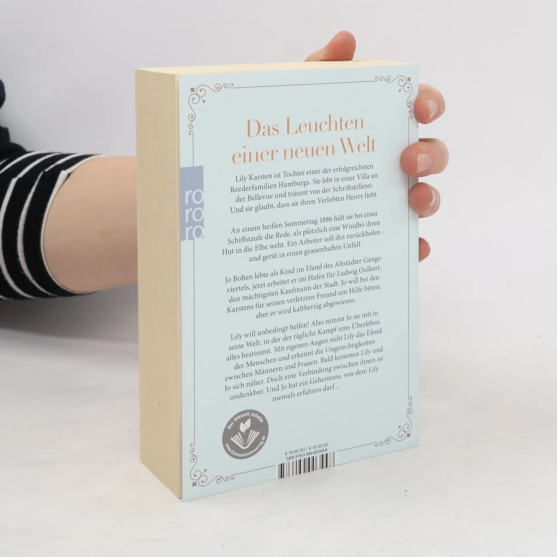 Das Leuchten einer neuen Welt Lily Karsten ist Tochter einer der erfolgreichsten Reederfamilien Hamburgs. Sie lebt in einer Villa an der Bellevue und träumt von der Schriftstellerei. Und sie glaubt, dass sie ihren Verlobten Henry liebt. An einem heißen Sommertag 1886 hält sie bei einer Schiffstaufe die Rede, als plötzlich eine Windbö ihren Hut in die Elbe weht. Ein Arbeiter soll ihn zurückholen – und gerät in einen grauenhaften Unfall. Jo Bolten lebte als Kind im Elend des Altstädter Gängeviertels, jetzt arbeitet er im Hafen für Ludwig Oolkert, den mächtigsten Kaufmann der Stadt. Jo will bei den Karstens für seinen verletzten Freund um Hilfe bitten, aber er wird kaltherzig abgewiesen. Lily will unbedingt helfen! Also nimmt Jo sie mit in seine Welt, in der der tägliche Kampf ums Überleben alles bestimmt. Mit eigenen Augen sieht Lily das Elend der Menschen und erkennt die Ungerechtigkeiten zwischen Männern und Frauen. Bald kommen Lily und Jo sich näher. Doch eine Verbindung zwischen ihnen ist undenkbar. Und Jo hat ein Geheimnis, von dem Lily niemals erfahren darf ...