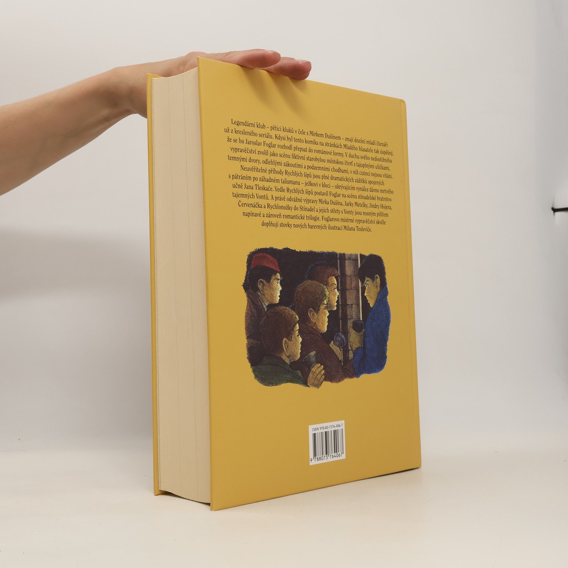 Výpravné souborné vydání slavné trilogie Jaroslava Foglara (Záhada hlavolamu, Stínadla se bouří a Tajmství Velkého Vonta). Neuvěřitelné příhody Rychlých šípů plné soubojů a tajuplných zážitků při pátrání po záhadném talismanu ježkovi v kleci, ukrývajícím vynález dávno mrtvého učně Jana Tleskače, jejich výpravy do starobylé městské čtvrti, ovládané tajemným bratrstvem Vontů, kde "cizinci" nemají co pohledávat, čítaly celé generace mladých čtenářů jedním dechem. Foglarovo nedostižné vypravěčství skvěle doplňuje více než 600 nových barevných ilustrací Milana Tesleviče. 3. souborné vydání Foglarovy trilogie - tentokrát se změněným názvem a s novými ilustracemi a grafické úpravě - velký formát.