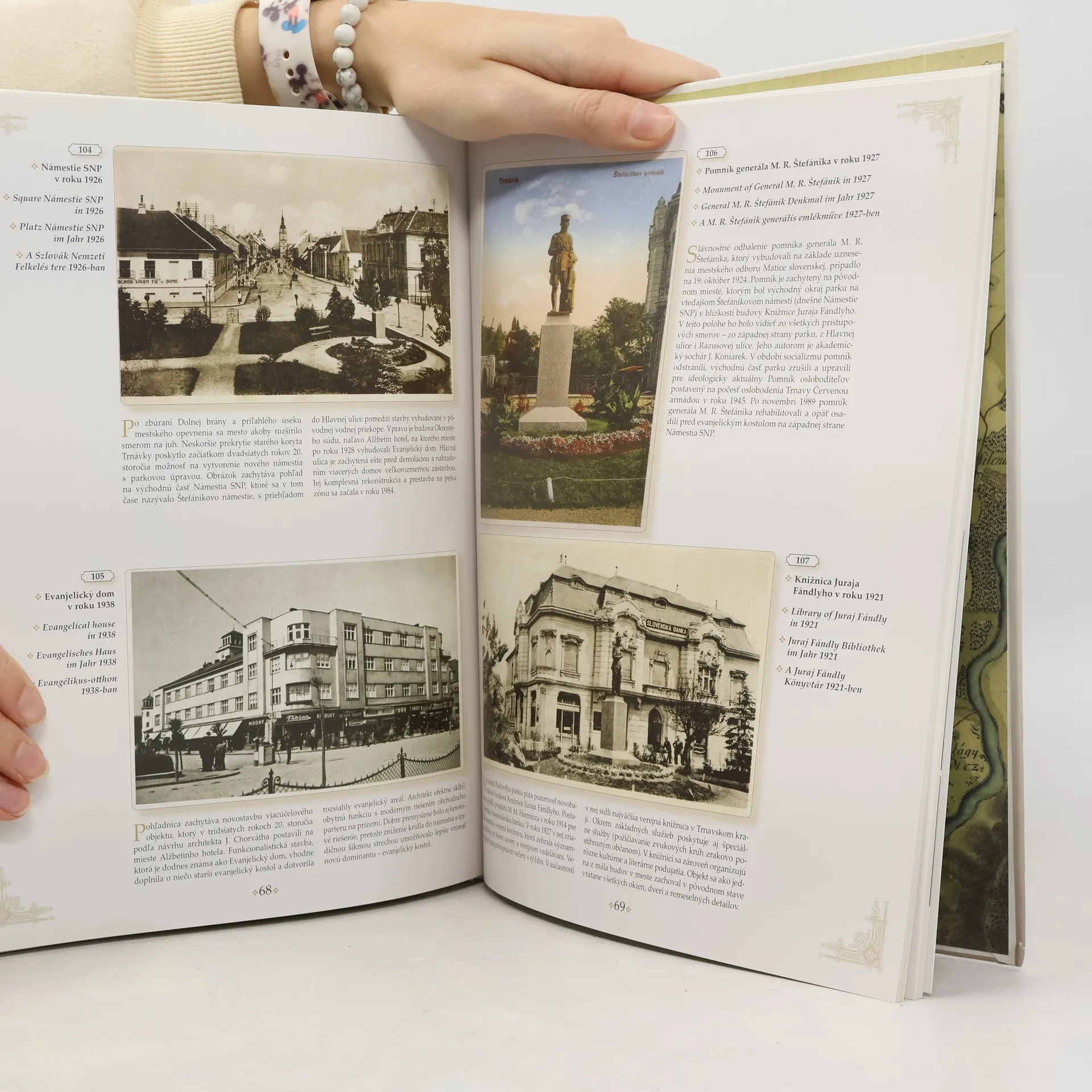 Kniha ponúka „pohľadnicovú“ prechádzku starou Trnavou, zachytávajúc obraz mesta v prvej polovici 20. storočia prostredníctvom viac než 160 historických pohľadníc. Tieto pohľadnice sú zoradené topograficky, začínajúc na Trojičnom námestí a pokračujúc ulicami a námestiami starej Trnavy, pričom na záver sú predstavené aj niektoré predmestia. Prechádzka končí litografiami a futuristickou víziou budúcej Trnavy. Texty o jednotlivých častiach mesta opisujú históriu, obohatenú o príbehy, ktoré čitateľom priblížia mentalitu a život obyvateľov Trnavy v minulosti. Štruktúra a členenie kapitol prispievajú k hlbšiemu precíteniu zákutí Trnavy, ktorá očarila mnohých návštevníkov. Na mape strednej Európy je len málo miest s takou bohatou históriou, akú má Trnava. Hoci jej poloha na rovine neumožňuje výhľady, mnohé pohľady z mestskej veže alebo veží kostolov charakterizujú tvár mesta a odhaľujú jeho najkrajšie časti. Kniha obsahuje aj úvodné slovo vydavateľa a autora, kapitoly o histórii, starom meste, železničnej stanici, fabrikách a ďalších zaujímavostiach, čím ponúka komplexný pohľad na Trnavu.