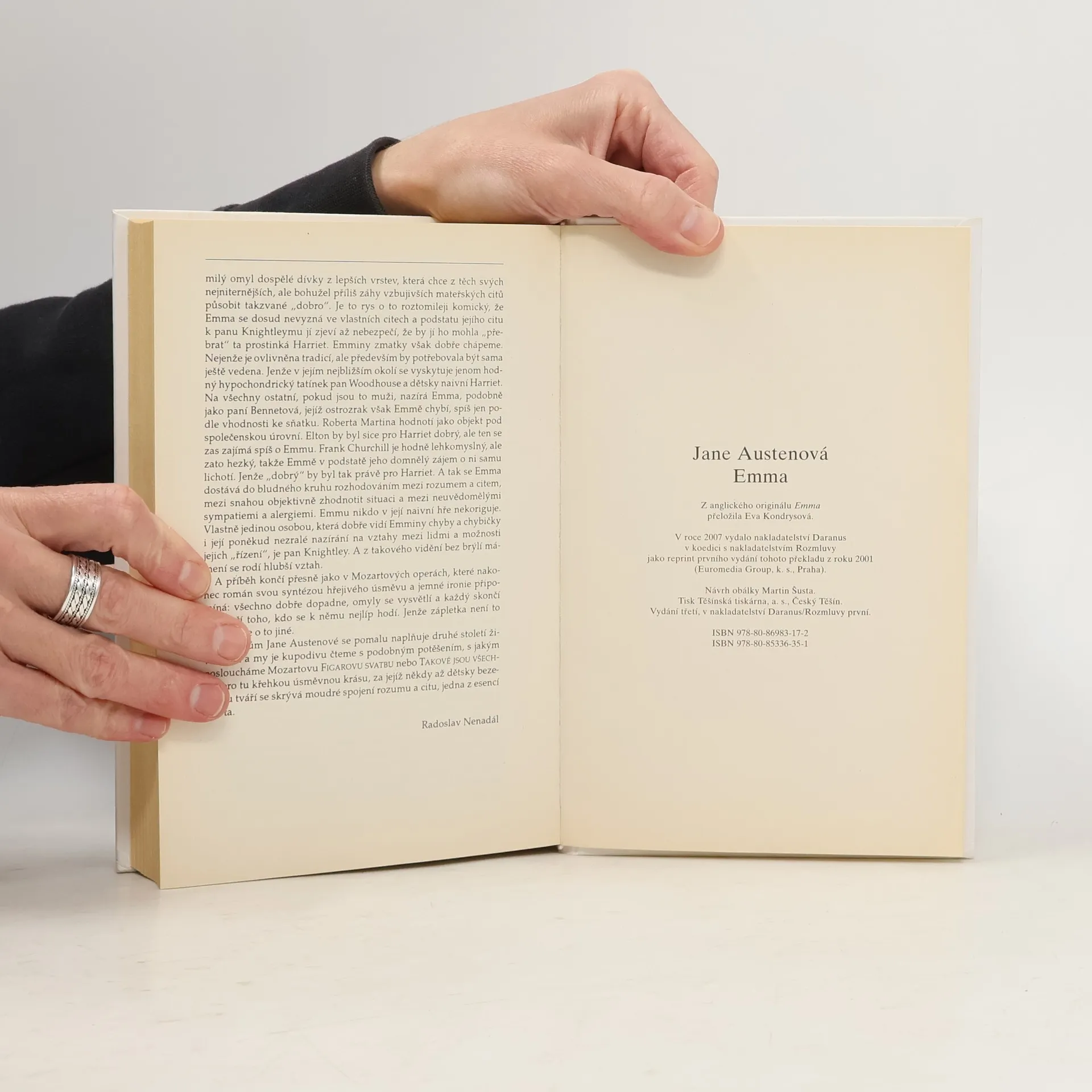 V dobách, kdy ženy bývaly křehké květinky a mladé dívky často interesantně omdlévaly, vytvořila Jane Austenová ve své Emmě hrdinku z jiného kadlubu. Když v útlém mládí ztratí matku a na otce, slabošského hypochondra, nelze spoléhat, ujme se správy věcí na rodném panství sama a nároky, které na ni nelehká situace klade, vypěstují v bystré dívce vlastnosti suverénního generála. Jen ona všemu rozumí, jen ona ví, co je pro každého dobré. Tímto způsobem ovšem kráčí od maléru k maléru a často pěkně zavaří i těm, kterým upřímně chtěla pomoci. Ale protože jí nechybí dobré srdce, časem zmoudří a pochopí, kde hledat v životě ty pravé hodnoty. Román (v jeho filmovém zpracování ztvárnila Emmu oblíbená Gwyneth Paltrowová) zažívá v poslední době novou vlnu čtenářského zájmu. Je to snad tím, že dnešní ženy v jeho hrdince rozpoznávají předchůdkyně svého emancipačního úsilí o společenské uznání svých schopností i úskalí, jimž by se přitom měly vyhnout?