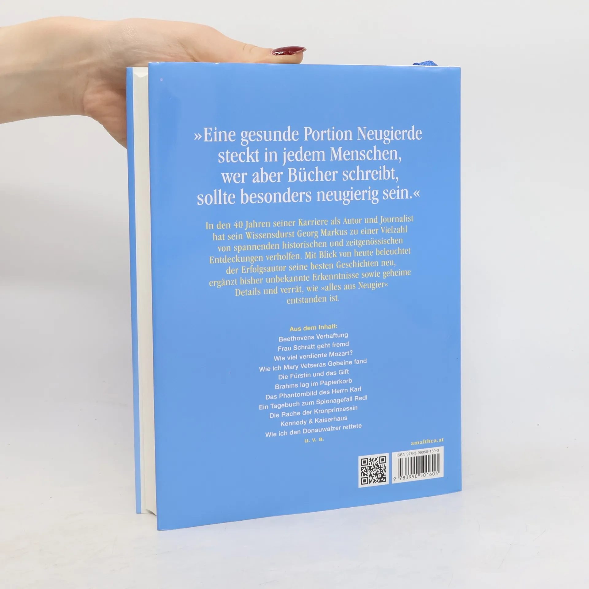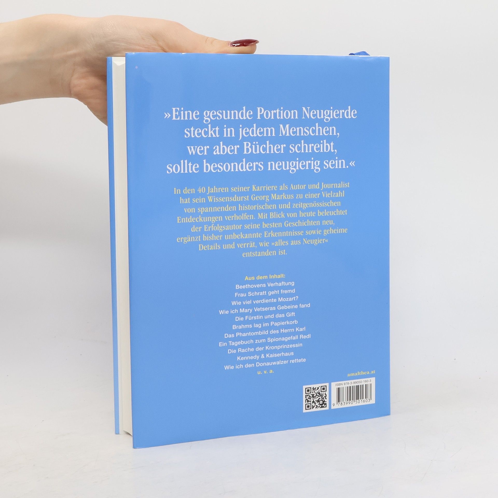 Das große Jubiläum des Bestsellerautors Seit 40 Jahren erzählt Georg Markus Geschichten mit Geschichte ebenso spannend wie humorvoll. Unzählige Bücher über berühmte historische Persönlichkeiten sind entstanden, vom Publikum geliebt und mit großer Freude erwartet. Vielen bekannten Protagonisten begegnen wir auch in Markus’ neuem Wurf: dem alten Kaiser und der Schratt; Beethovens Verhaftung in Wiener Neustadt fehlt ebenso wenig wie die Markus-»Klassiker« über den Grabraub der Mary Vetsera und wie er das Geheimrezept der Sachertorte lüftete. Wir erfahren den wahren Hintergrund zum Spionagefall Redl, Intimes über Österreichs populärste Volksschauspieler, aber auch wie der Autor der echten Tante Jolesch und der Identität des tatsächlichen »Herrn Karl« auf die Spur kam. Mit Blick von heute beleuchtet Georg Markus seine besten Geschichten neu, ergänzt bisher unbekannte Erkenntnisse sowie geheime Details und verrät, wie »alles aus Neugier« entstanden ist. Ein vergnügliches Buch zum Wieder- und Neuentdecken – das perfekte Geschenk zum Jubiläum des Erfolgsschriftstellers.