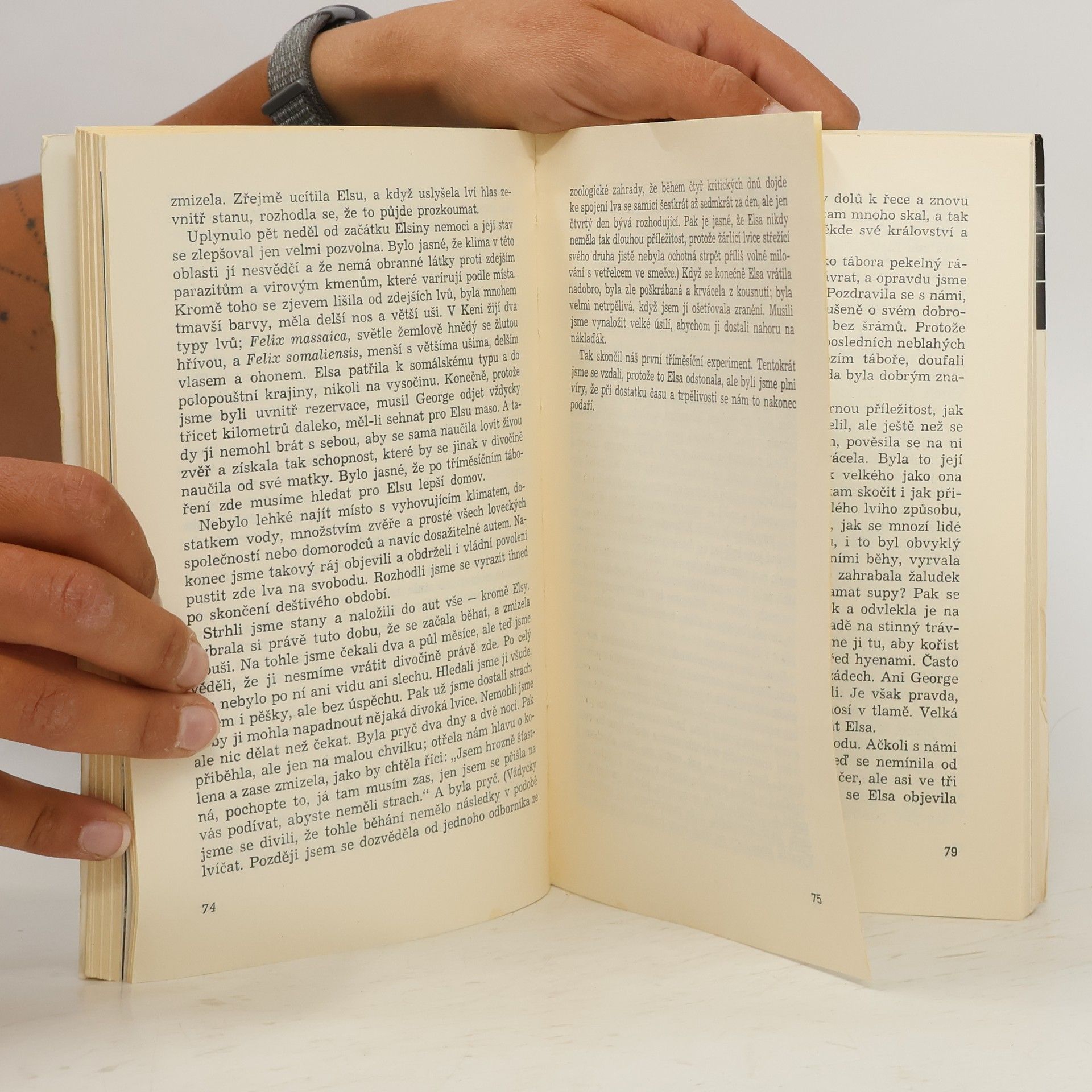 Nesmrtelné vyprávění o neobyčejném přátelství ženy a lvice, zachycuje životní osudy roztomilé, hravé Elsy – jak byla odchována lidmi a jak se postupně dokázala vrátit do náruče rodné divočiny, najít si druha a stát se matkou tří mláďat. Příběh Elsy je silným čtenářským zážitkem a zároveň unikátní studií psychologie divokých zvířat, působivým důkazem jejich inteligence, sebeovládání a emočních schopností. Vyprávění o soužití člověka se zvířaty na farmě i v buši je prosycené nádhernými, veselými i smutnějšími zážitky.