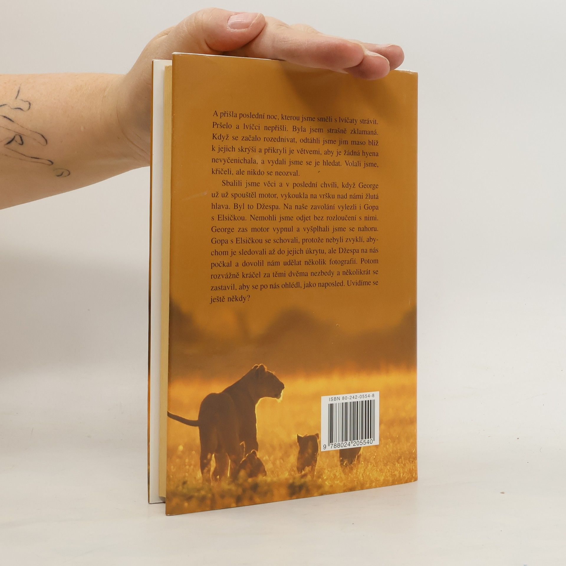 Nesmrtelné vyprávění o neobyčejném přátelství ženy a lvice, zachycuje životní osudy roztomilé, hravé Elsy – jak byla odchována lidmi a jak se postupně dokázala vrátit do náruče rodné divočiny, najít si druha a stát se matkou tří mláďat. Příběh Elsy je silným čtenářským zážitkem a zároveň unikátní studií psychologie divokých zvířat, působivým důkazem jejich inteligence, sebeovládání a emočních schopností. Vyprávění o soužití člověka se zvířaty na farmě i v buši je prosycené nádhernými, veselými i smutnějšími zážitky...