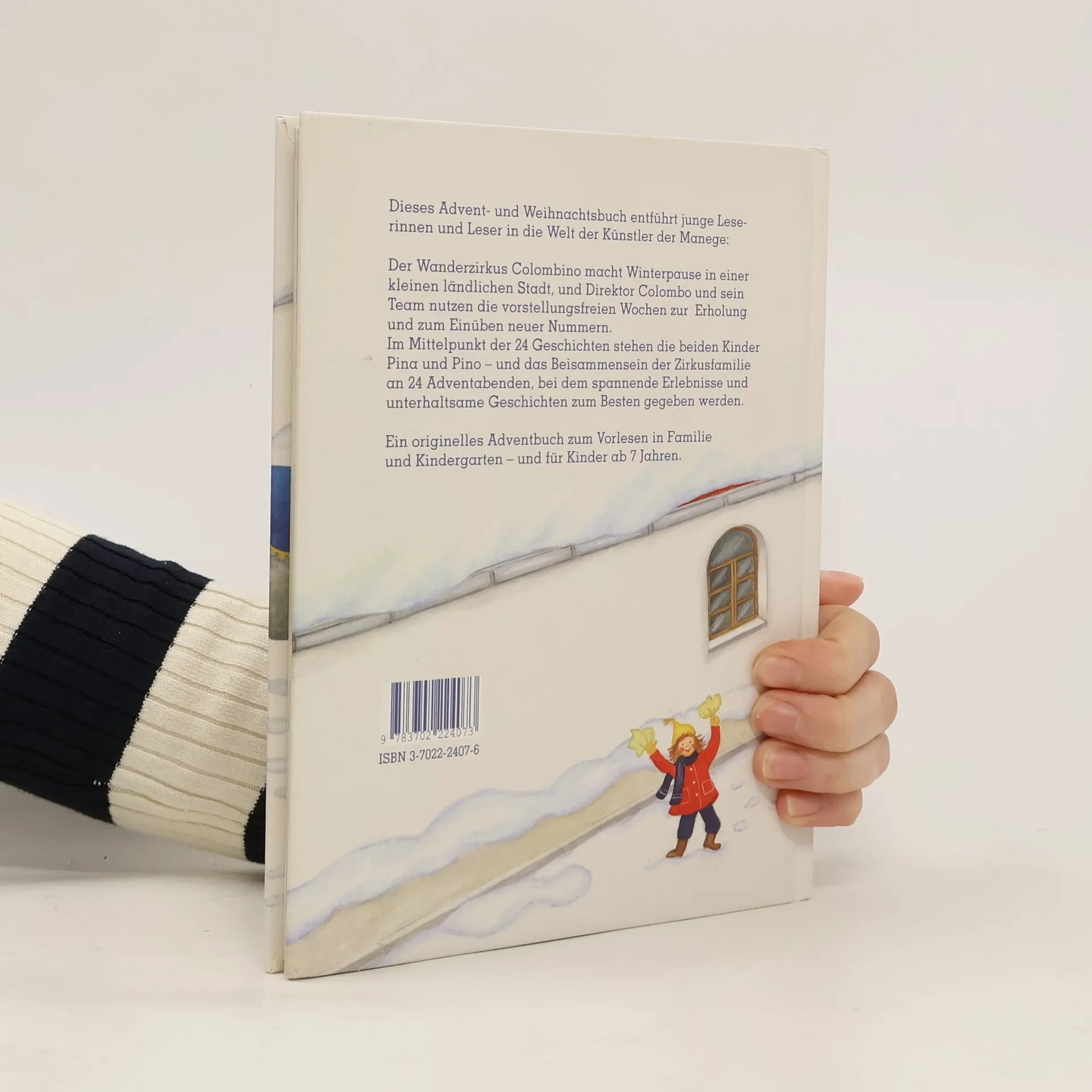 Dieses originelle und reich illustrierte Advent- und Weihnachtsbuch mit 24 x 2 Geschichten entführt junge Leser in die Welt der Künstler der Manege. Der Wanderzirkus Colombino macht Winterpause in einer kleinen ländlichen Stadt, und Direktor Colombo und sein Team nützen die vorstellungsfreien Wochen zur Erholung und zum Einüben neuer Kunststücke. Im Mittelpunkt der 24 Geschichten stehen die beiden Kinder Pina und Pino – und das Beisammensein der Zirkusfamilie an 24 Adventabenden, an denen spannende Erlebnisse und unterhaltsame Geschichten zum Besten gegeben werden, wobei die meisten Geschichten etwas mit dem betreffenden Tag im Advent zu tun haben. Für Kinder ab 5 Jahren zum Vorlesen oder zum Selberlesen ab dem zweiten Schuljahr.