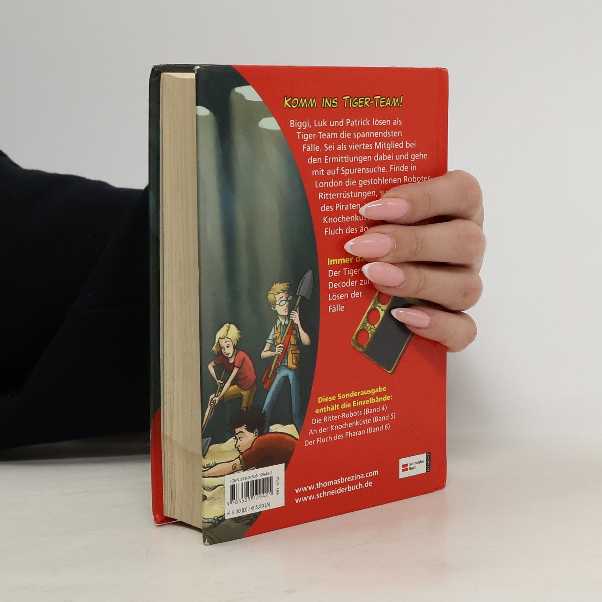 Biggi, Luk und Patrick lösen als Tiger-Team die spannendsten Fälle. Sei als viertes Mitglied bei den Ermittlungen dabei und gehe mit auf Spurensuche. Finde in London die gestohlenen Roboter-Ritterrüstungen, suche das Grab des Piraten an der karibischen Knochenküste und brich den Fluch des ägyptischen Pharao! Dieser Sammelband enthält die Einzelbände: Die Ritter-Robots (Band 4) An der Knochenküste (Band 5) Der Fluch des Pharao (Band 6)