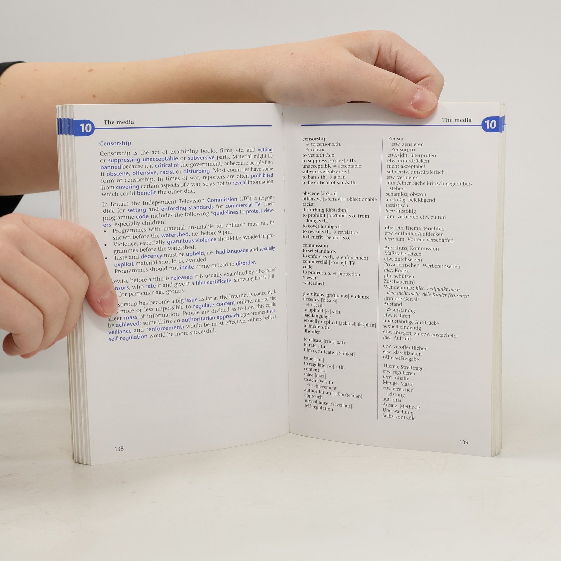 Der umfangreiche, thematische Wortschatz wird in Texten, also in context, dargeboten. Er ist in erster Linie für Lernende bestimmt, die in Eigeninitiative Themen vor- und nachbereiten und sich für Prüfungen wappnen möchten. §Die 16 Kapitel des Bandes sind als Doppelseiten aufgebaut: Jeder Textseite steht eine Vokabelseite gegenüber. Der thematische Wortschatz der Textseite ist farblich hervorgehoben. Die Vokabelseite enthält neben Übersetzungen auch Hinweise auf Synonyme, Antonyme, Wortableitungen und Kollokationen. §Zur Vertiefung des Gelernten enthält jedes Kapitel zwei Übungsseiten.