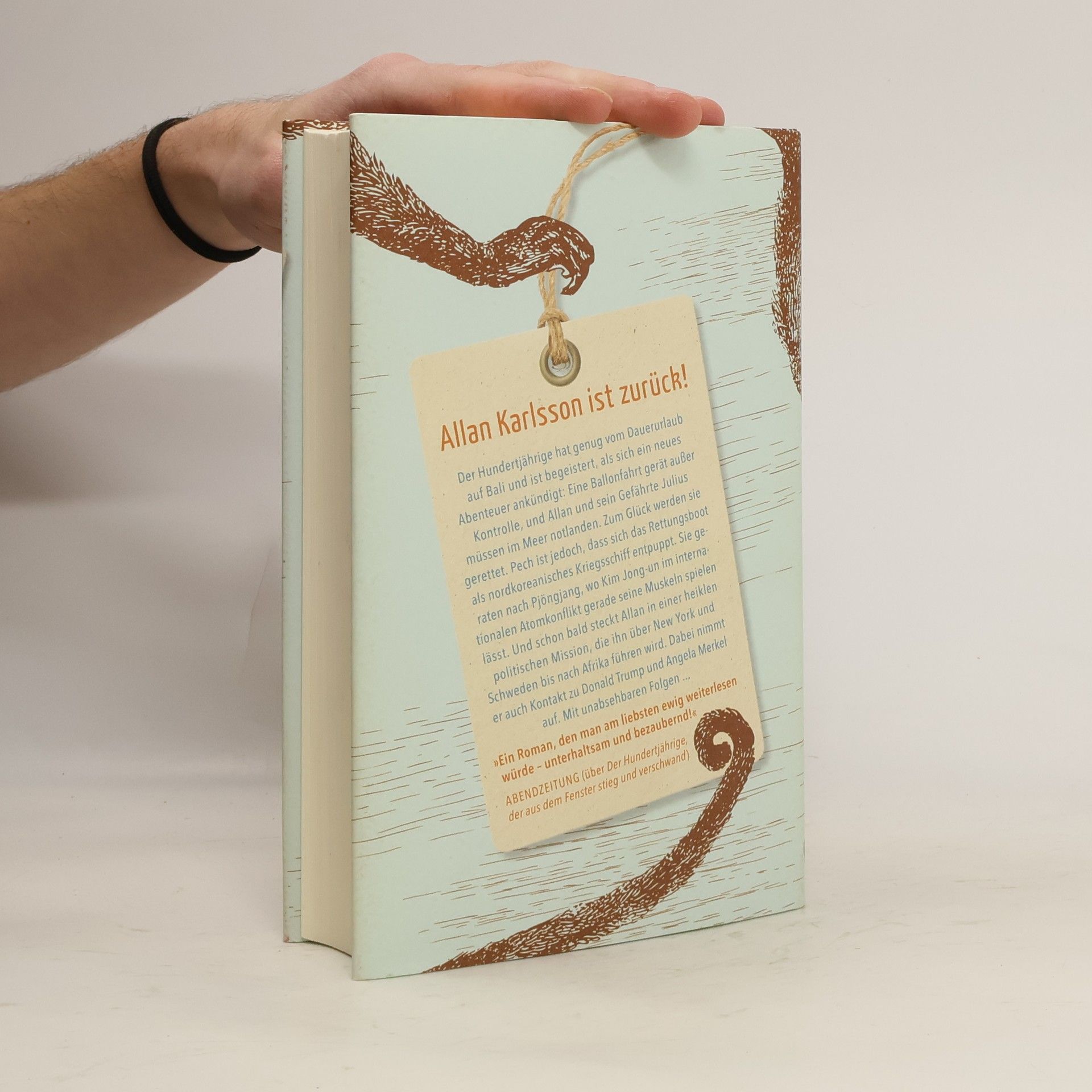 Der Hundertjährige ist zurück! Allan Karlsson ist wieder da! Der Hundertjährige hat genug vom Dauerurlaub auf Bali und ist begeistert, als sich ein neues Abenteuer ankündigt: Bei einer Ballonfahrt geraten sie auf Abwege, und Allan und sein Gefährte Julius müssen im Meer notlanden. Zum Glück werden sie gerettet. Pech ist jedoch, dass sich das Rettungsboot als nordkoreanisches Kriegsschiff entpuppt und Kim Jong-un im Atomkonflikt gerade seine Muskeln spielen lässt. Und schon steckt Allan, der sich mit Atomwaffen schließlich bestens auskennt, mitten in einer heiklen politischen Mission, die ihn von Nordkorea über New York bis in den Kongo führen wird. Dabei nimmt er auch Kontakt zu Donald Trump und Angela Merkel auf - mit ungeahnten Folgen...