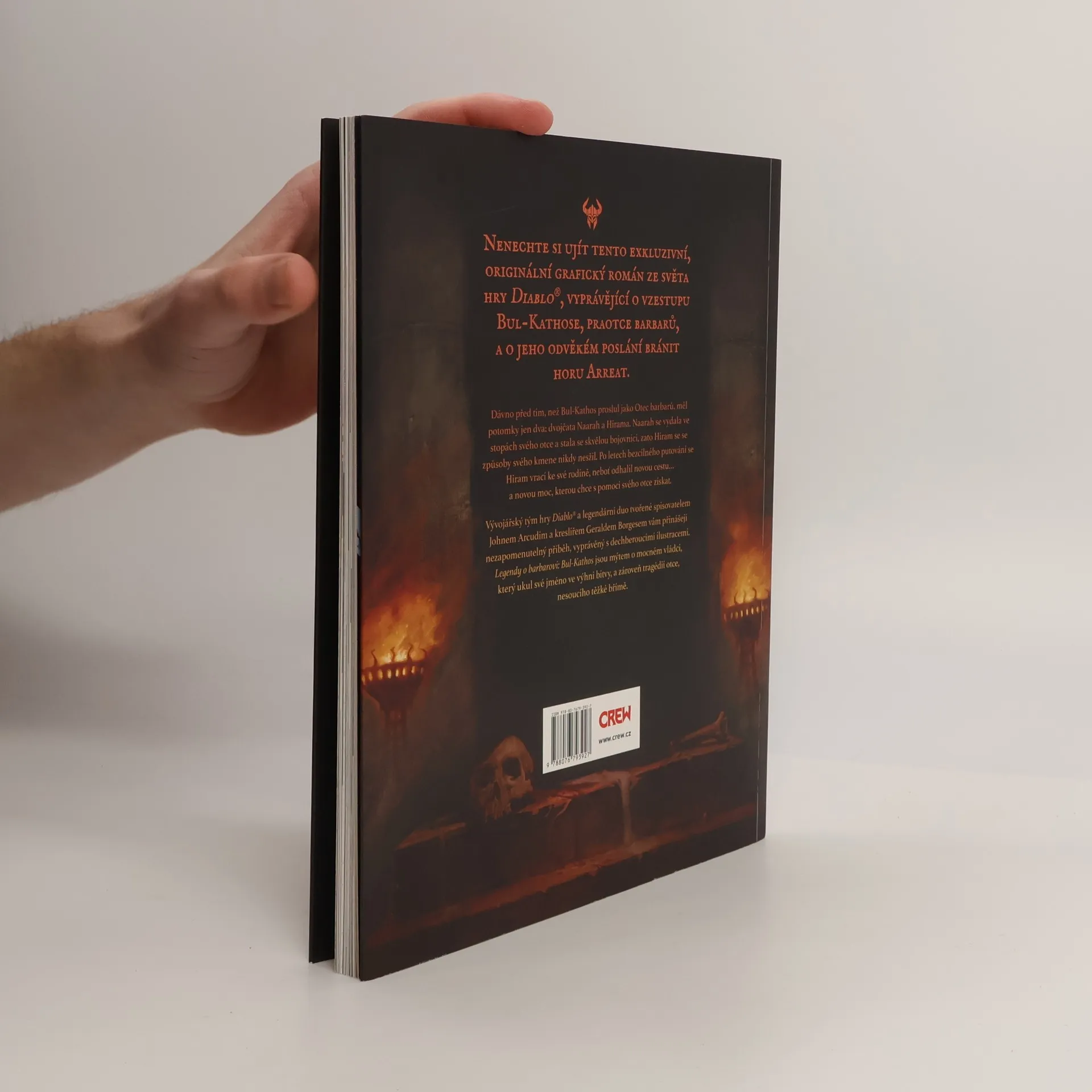 Nenechte si ujít tuto exkluzivní, originální grafickou novelu ze světa hry Diablo ® , vyprávějící o vzestupu Bul-Kathose, praotce barbarů, a o jeho odvěkém poslání bránit horu Arreat.Dávno před tím, než Bul-Kathos proslul jako otec barbarů, měl potomky jen dva: dvojčata Naarah a Hirama. Naarah se vydala ve stopách svého otce a stala se z ní skvělá bojovnice, zato Hiram se se způsoby svého kmene nikdy nesžil. Po letech bezcílného putování se Hiram vrací ke své rodině poté, coodhalil novou cestu… a novou moc, kterou chce s pomocí svého otce získat.Vývojářský tým hry Diablo ® a legendární duo tvořené spisovatelem Johnem Arcudim a kreslířem Geraldem Borgesem vám přinášejí nezapomenutelný příběh, vyprávěný s dechberoucími ilustracemi. Legendy o barbarovi: Bul-Kathos jsou mýtem o mocném vládci, který ukul své jméno ve výhni bitvy, a zároveň tragédií otce, nesoucího těžké břímě.PONOŘTE SE HLOUBĚJI DO TEMNÉHO SVĚTA DIABLA ®…