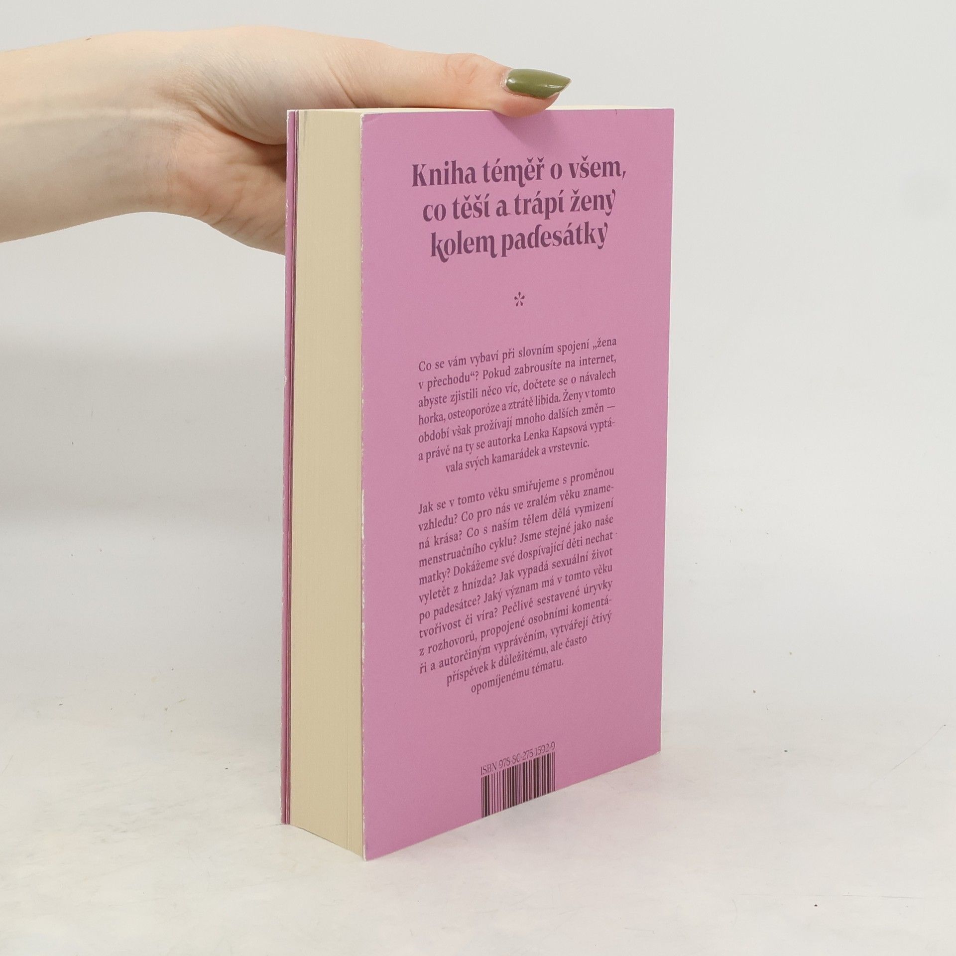 Kniha téměř o všem, co trápí ženy kolem padesátky. Co se vám vybaví při slovním spojení "žena v přechodu"? Pokud zabrousíte na internet, abyste zjistili něco víc, dočtete se o návalech horka, osteoporóze a ztrátě libida. Ženy v tomto období však prožívají i mnoho dalších změn - a právě na ty se autorka Lenka Kapsová vyptávala svých kamarádek a vrstevnic. Jak se v tomto věku smiřujeme s proměnou vzhledu? Co pro nás ve zralém věku znamená krása? Co s naším tělem dělá vymizení menstruačního cyklu? Jsme stejné jako naše matky? Dokážeme své dospívající děti nechat vyletět z hnízda? Jak vypadá sexuální život po padesátce? Jaký význam má v tomto věku tvořivost a víra? Pečlivě poskládané úryvky z rozhovorů, propojené osobními komentáři a autorčiným vyprávěním, vytvářejí čtivý příspěvek k důležitému, ale často opomíjenému tématu.