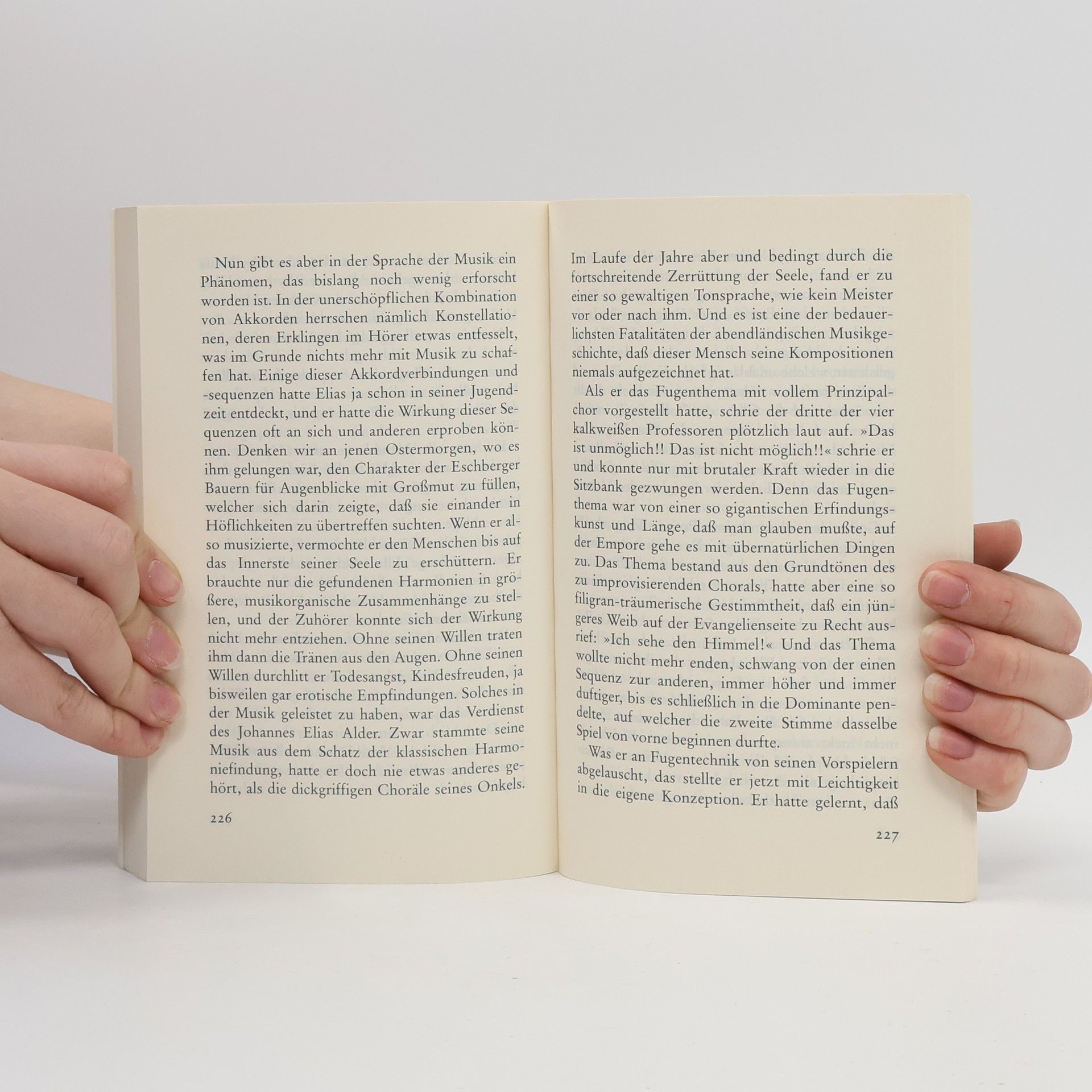 Wer liebt, schläft nicht: »Das ist die Geschichte des Musikers Johannes Elias Alder, der zweiundzwanzigjährig sein Leben zu Tode brachte, nachdem er beschlossen hatte, nicht mehr zu schlafen. Denn er war in unsäglicher Liebe zu seiner Cousine Elsbeth entbrannt« So beginnt Robert Schneiders Romandebüt, in dem er das Leben des Elias Alder beschreibt. »Ein Genie ohne Erweckung, ein Künstler ohne Berufung - das ist das Thema dieser fast spektakulär gut erzählten Geschichte.« (FAZ)