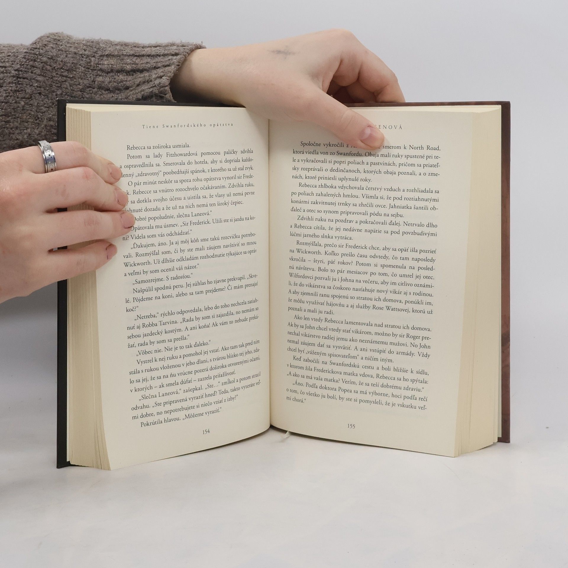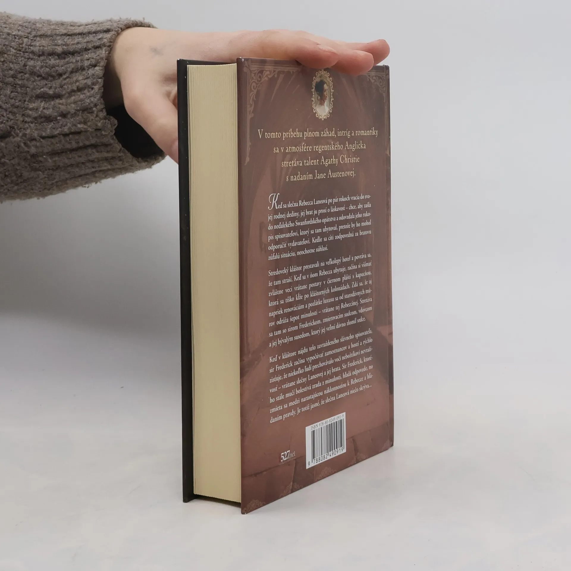 Keď sa slečna Rebecca Laneová po pár rokoch vracia do svojej rodnej dediny, jej brat ju prosí o láskavosť – chce, aby zašla do neďalekého Swanfordského opátstva a odovzdala jeho rukopis spisovateľovi, ktorý sa tam ubytoval, pretože by ho mohol odporučiť vydavateľovi. Keďže sa cíti zodpovedná za bratovu zúfalú situáciu, neochotne súhlasí. Stredoveký kláštor prestavali na veľkolepý hotel a povráva sa, že tam straší. Keď sa v ňom Rebecca ubytuje, začína si všímať zvláštne veci vrátane postavy v čiernom plášti s kapucňou, ktorá sa tíško kĺže po kláštorných kolonádach. Zdá sa, že aj napriek renováciám a pozlátke luxusu sa od starodávnych múrov odráža šepot minulosti – vrátane tej Rebeccinej. Stretáva sa tam so sirom Frederickom, zmierovacím sudcom, vdovcom a jej bývalým susedom, ktorý jej veľmi dávno zlomil srdce.Keď v kláštore nájdu telo zavraždeného slávneho spisovateľa, sir Frederick začína vypočúvať zamestnancov a hostí a rýchlo zisťuje, že niekoľko ľudí prechovávalo voči nebožtíkovi nevraživosť – vrátane slečny Laneovej a jej brata. Sir Frederick, ktorého stále mučí bolestivá zrada z minulosti, hľadá odpovede, no zmieta sa medzi narastajúcou náklonnosťou k Rebecce a hľadaním pravdy. Je totiž jasné, že slečna Laneová niečo skrýva...