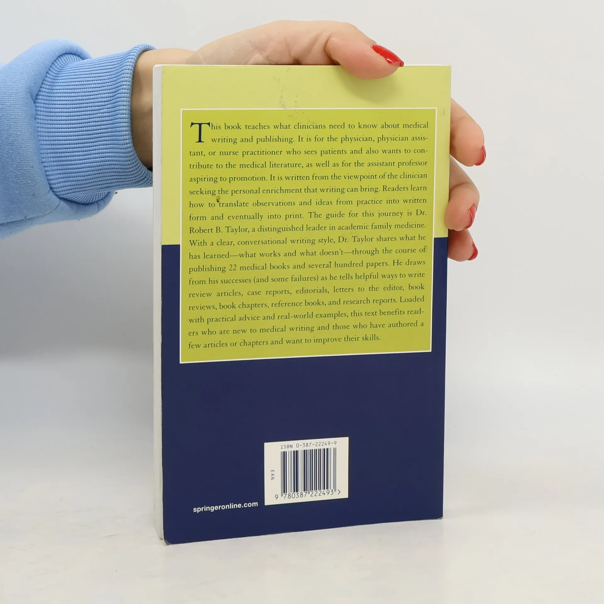 This book is for any clinician who wants to write. It is for the physician, physician assistant, or nurse practitioner who sees patients and also wants to contribute to the medical literature. It is for the assistant professor aspiring to promotion and the clinician in private practice seeking personal enrichment. Loaded with practical advice and real-world examples, this text benefits readers who are new to medical writing and those who have authored a few articles or chapters and want to improve. Readers relate to this book because it is written by someone who has been in their shoes. Dr. Robert B. Taylor is a leader in the field of family medicine. Unlike the authors of many other books who have little experience outside of academia or publishing, writing is just one component of his career. He wrote this book to share what works and what doesn’t in medical writing. Clinicians learn how to translate observations and ideas from their practices into written form and eventually into print.