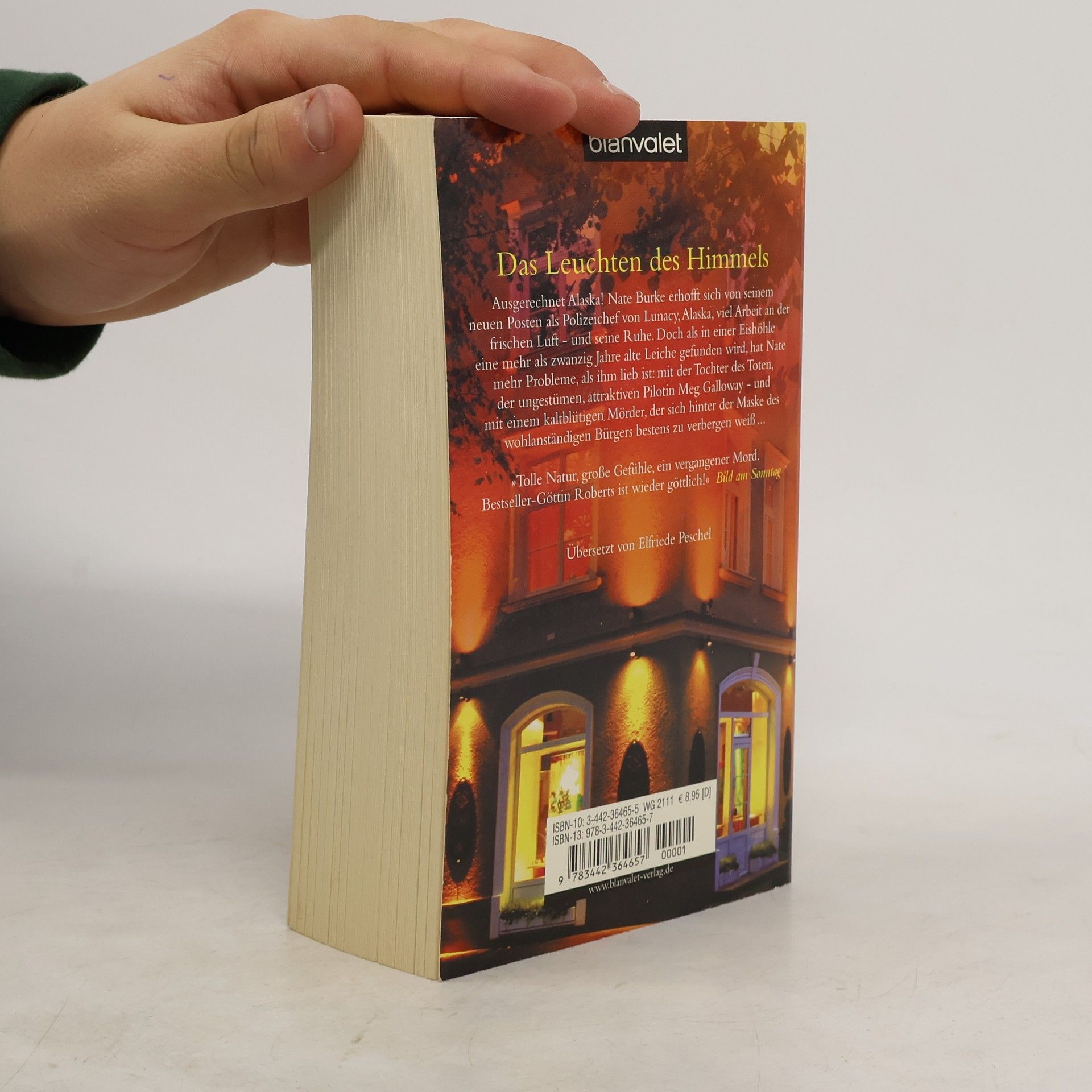 Spannend und romantisch – Nora Roberts in Höchstform! Ausgerechnet Alaska! Nate Burke erhofft sich von seinem neuen Posten als Polizeichef von Lunacy, Alaska, viel Arbeit an der frischen Luft – und seine Ruhe. Doch als in einer Eishöhle eine mehr als zwanzig Jahre alte Leiche gefunden wird, hat Nate mehr Probleme, als ihm lieb ist: mit der Tochter des Toten, der ungestümen, attraktiven Pilotin Meg Galloway – und mit einem kaltblütigen Mörder, der sich hinter der Maske des wohlanständigen Bürgers bestens zu verbergen weiß … „Das Leuchten des Himmels“ ist glänzender Spannungsroman und fesselnde Liebesgeschichte zugleich – angesiedelt vor der faszinierenden Kulisse Alaskas.